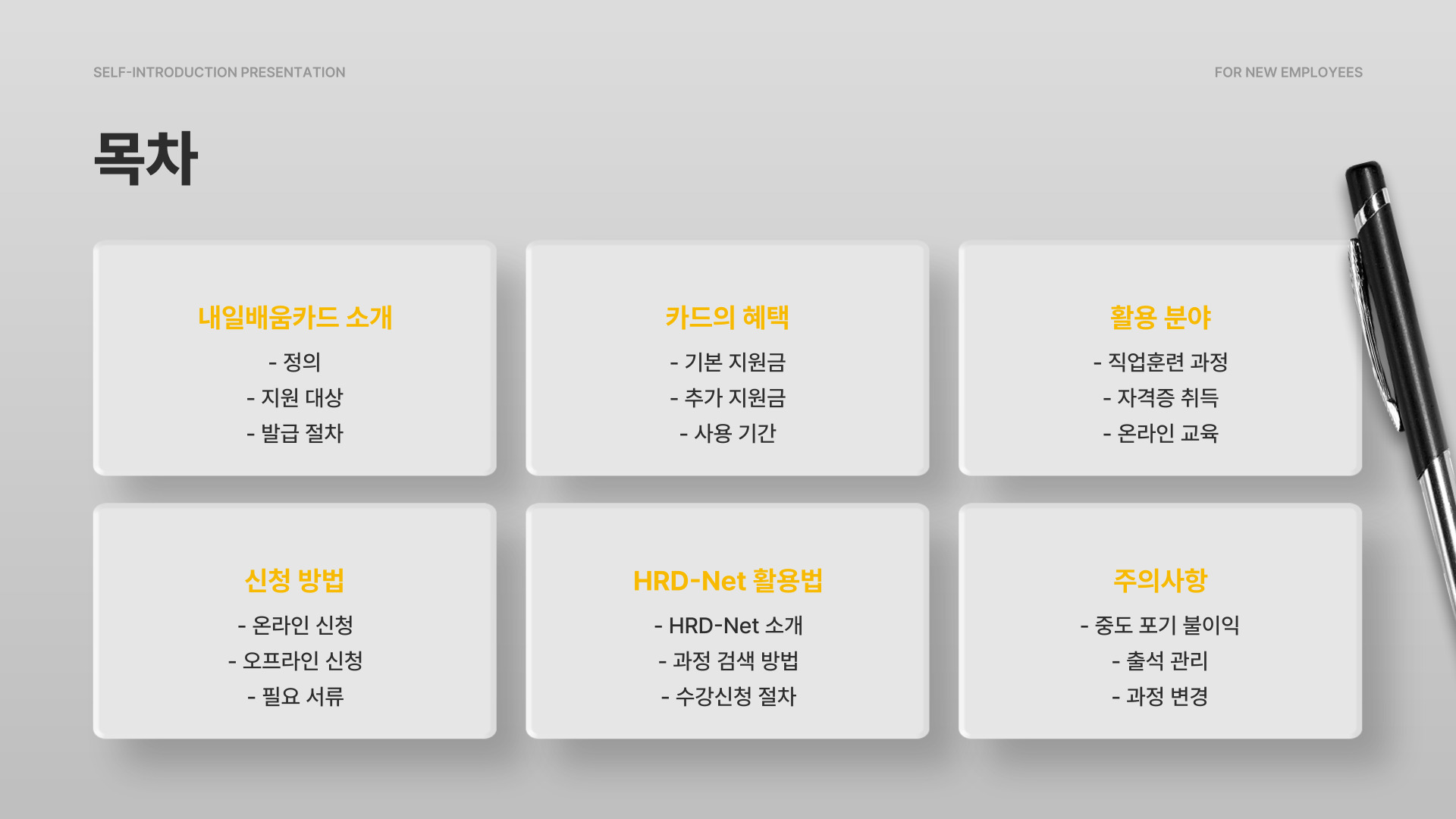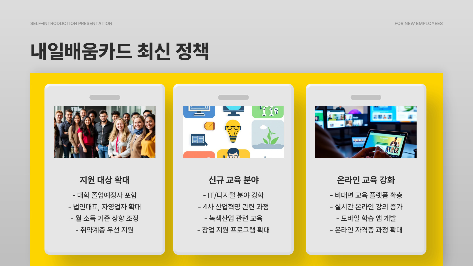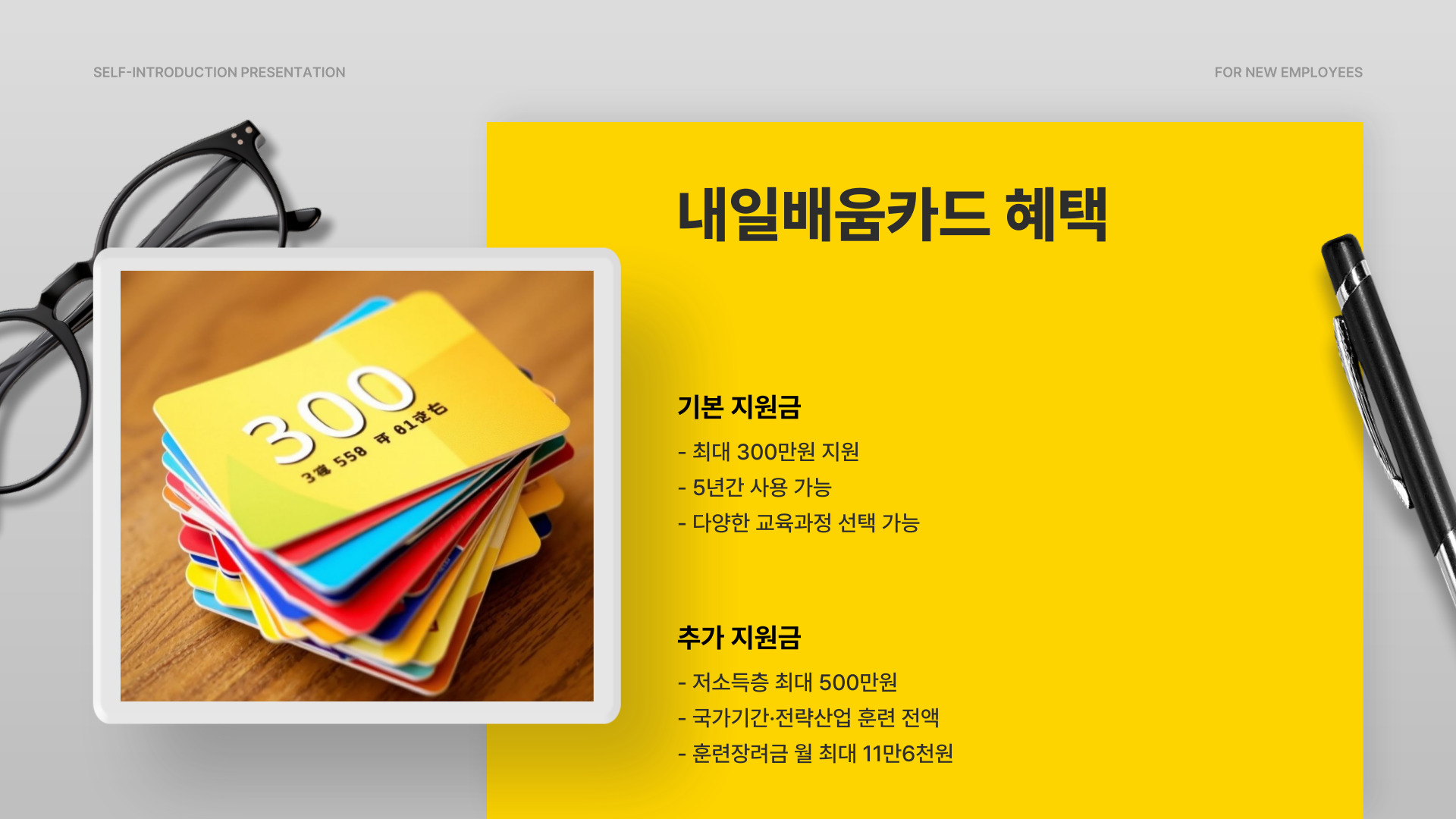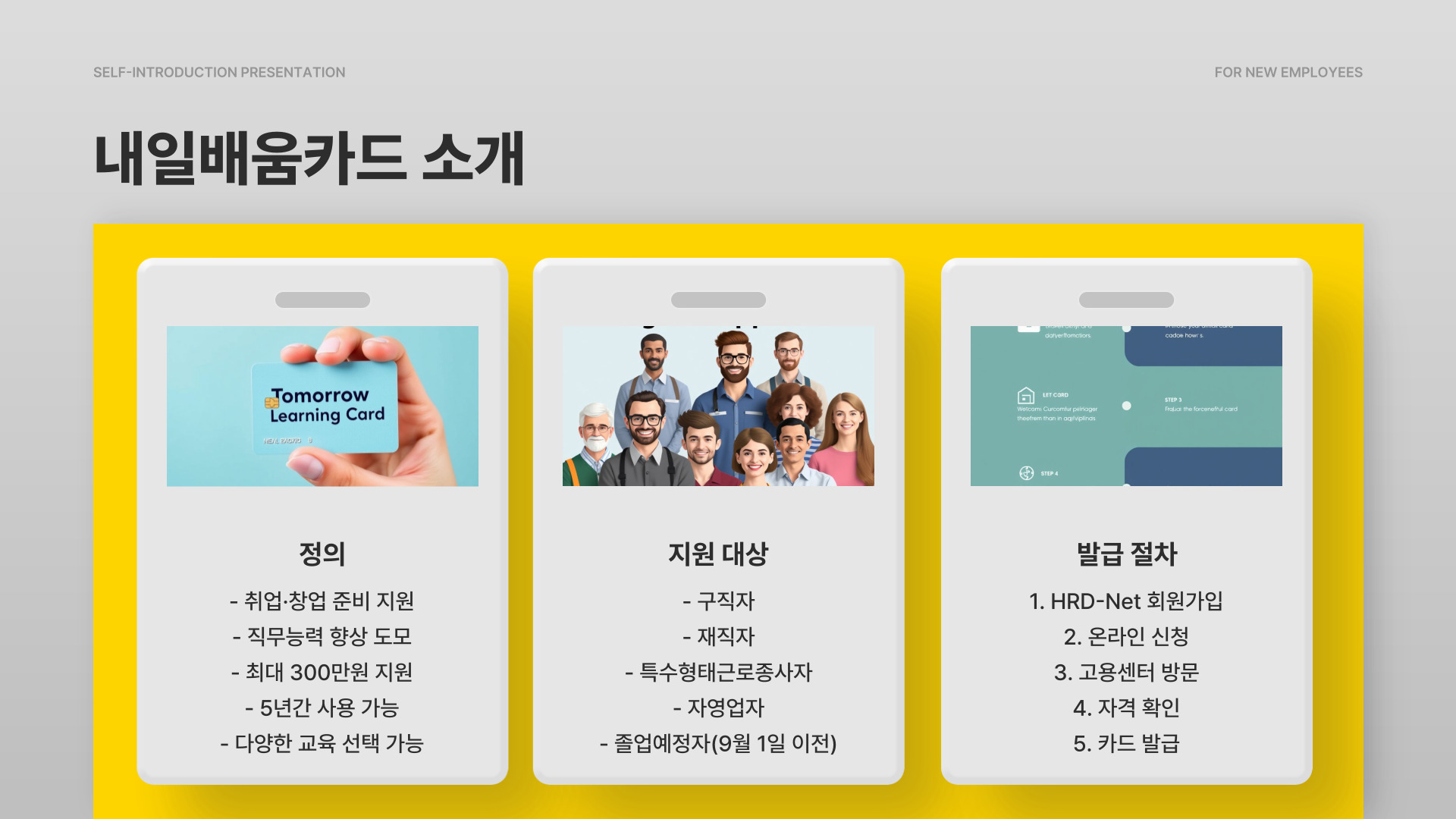 - 내일배움카드는 취업 희망자에게 직업 훈련을 지원합니다.