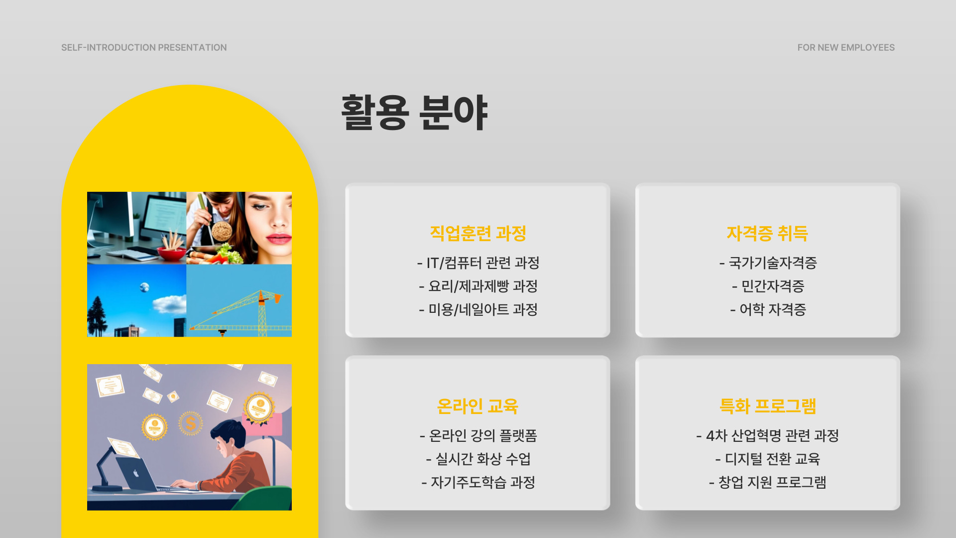 - 교육 수료 후 취업 지원 서비스도 제공받을 수 있습니다.