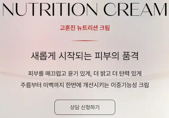 - 고혼진 뉴트리션 크림: 주름 개선과 깊은 보습 효과를 제공하여 탄력 있는 피부로 가꿔줍니다.