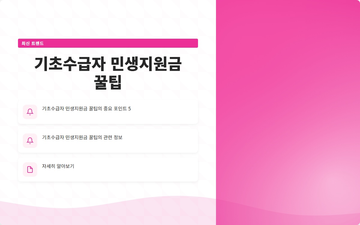 최근 이재명 정부가 발표한 민생회복지원금은 기초생활수급자에게 큰 도움이 될 수 있습니다.