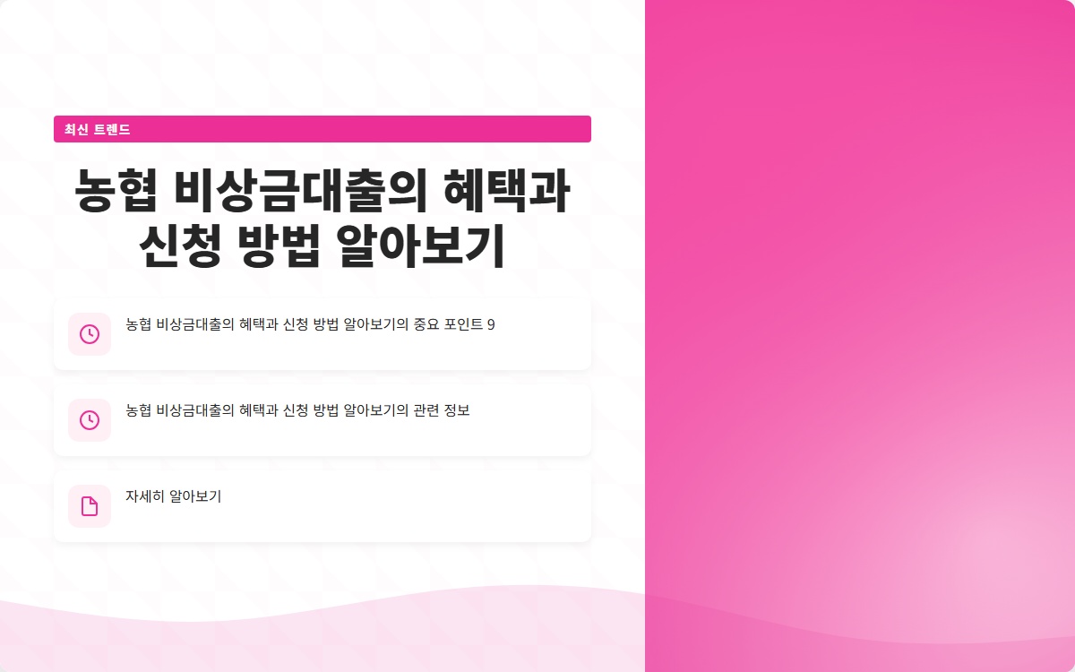 농협 비상금대출의 혜택과 신청 방법 알아보기