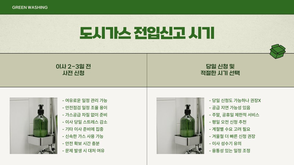 이사 후 도시가스를 신청한다고 해서 바로 연결되는 것이 아닙니다. 일반적으로 신청 후 약 일주일 정도 소요되므로, 미리 전입신고를 해두는 것이 중요합니다. 이사를 계획 중이라면, 도시가스의 요금조회 및 전입신고를 미리 진행하는 것이 좋습니다.
