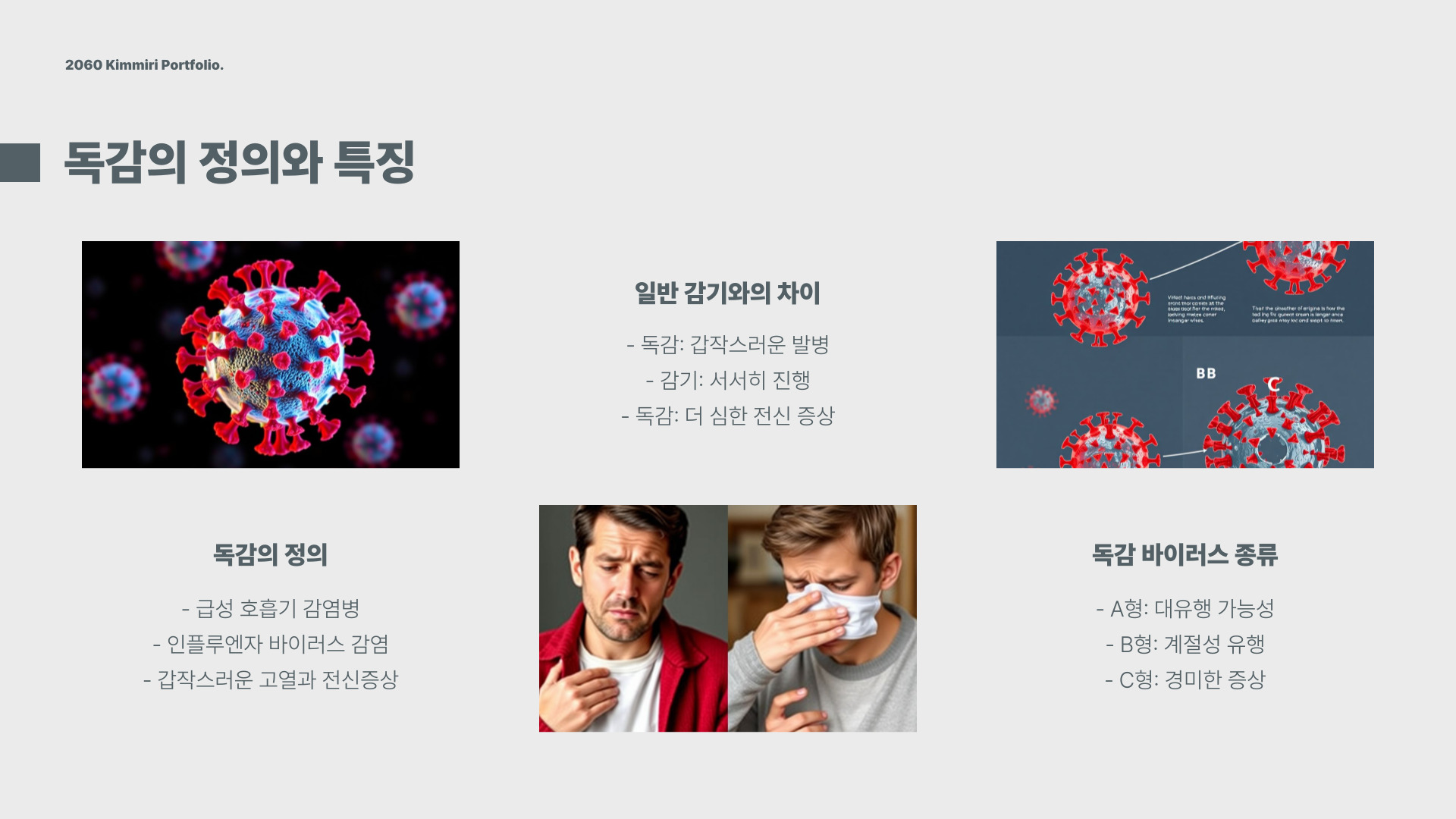 독감은 매년 많은 사람들에게 영향을 미치는 감염성 질병입니다. 특히 겨울철에 유행하며, 감염되면 다양한 증상이 동반됩니다. 독감은 일반 감기와 다른 점이 많기 때문에 증상을 올바르게 이해하는 것이 중요합니다. 독감 증상 순서를 통해 다양한 증상들이 어떻게 진행되는지를 살펴보겠습니다.