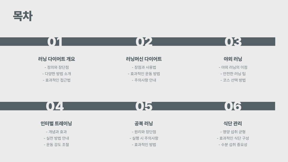 러닝 다이어트는 꾸준한 운동과 올바른 식습관의 결합으로 이루어집니다. 특히 러닝머신을 이용한 다이어트는 안전하고 효과적으로 체중 감량을 도와줍니다. 시작하기 두려움이 있다면 작은 목표부터 시작하여 자신감을 쌓아가는 것이 중요합니다.