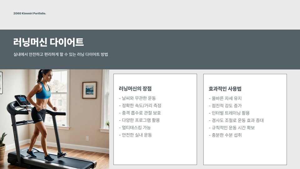러닝머신을 활용한 다이어트는 편리함과 안정성을 제공합니다. 러닝머신은 속도, 경사도, 시간 등을 조절할 수 있어 자신에게 맞는 강도로 운동할 수 있는 장점이 있습니다. 효과적인 러닝머신 다이어트를 위해서는 몇 가지 기본적인 팁을 따르는 것이 좋습니다.