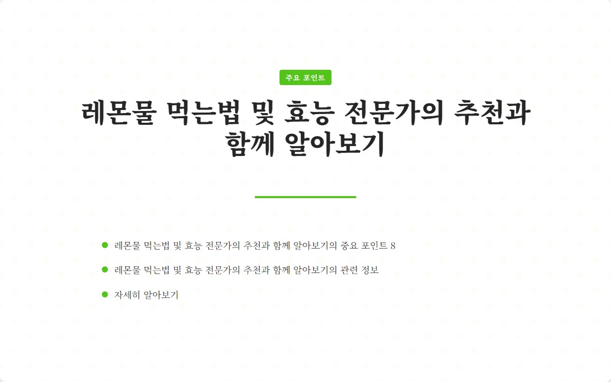 레몬물 먹는법 및 효능 전문가의 추천과 함께 알아보기