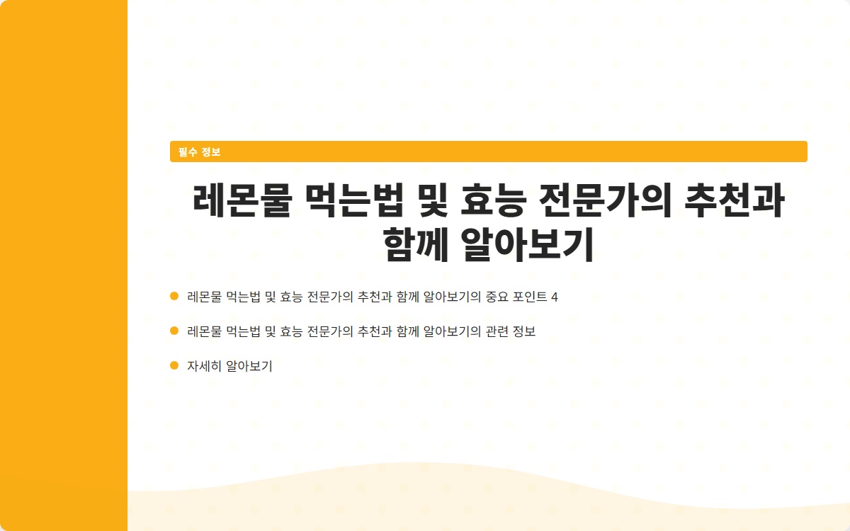 레몬물의 효능과 올바른 섭취 방법을 알아보세요!