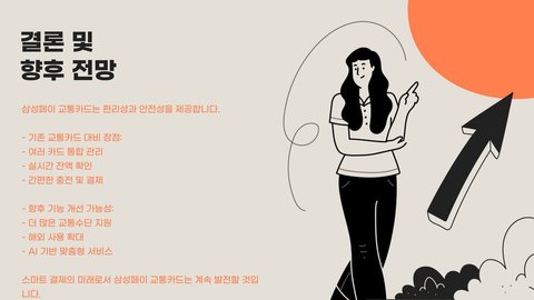추가로, 삼성페이는 다양한 지역에서 사용 가능하며, 해외에서도 일부 국가에서 교통카드 기능을 이용할 수 있는 장점이 있습니다. 해외 여행 시 삼성페이를 사용하면 현지 교통비를 절약할 수 있는 기회도 생깁니다.