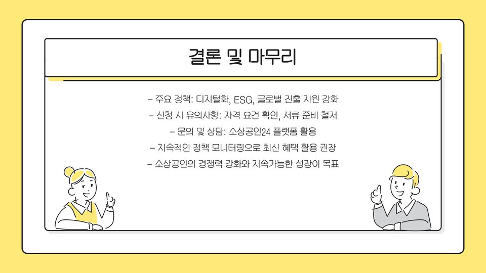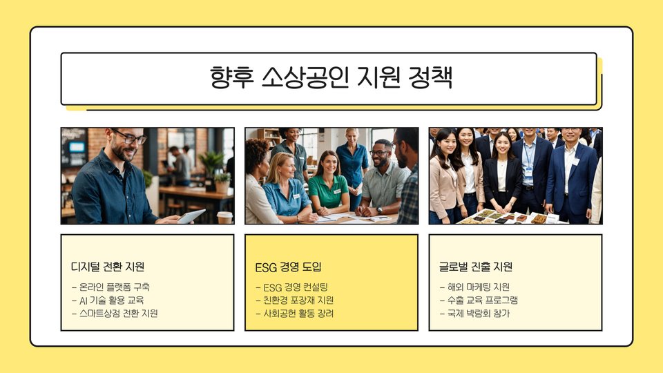 소상공인들은 새로운 정책과 지원을 적극 활용하여 경영 안정성 확보와 성장 가능성을 높이는 것이 중요합니다.