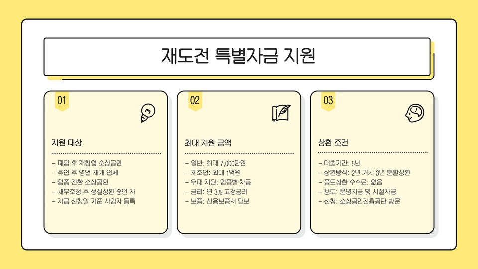 | 금융지원 | 저금리 대출 및 보조금으로 운영 자금 지원 |