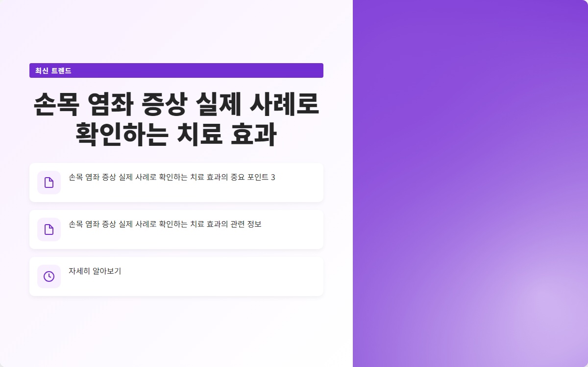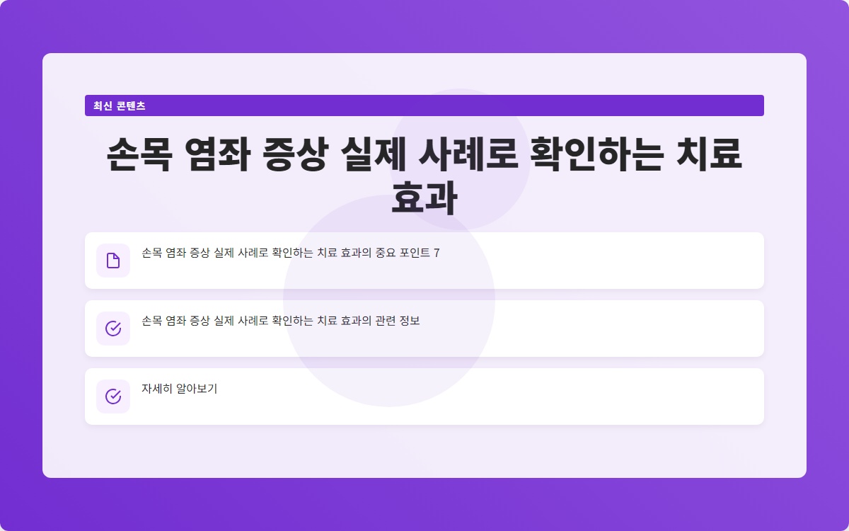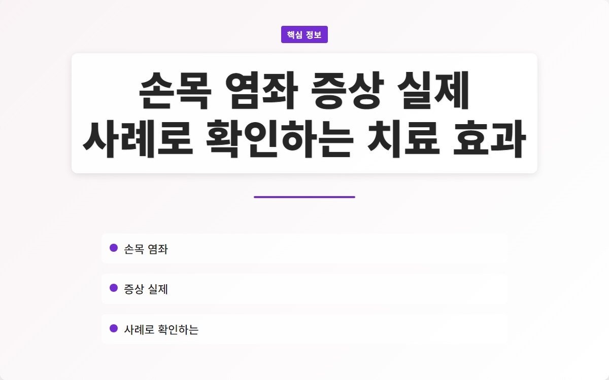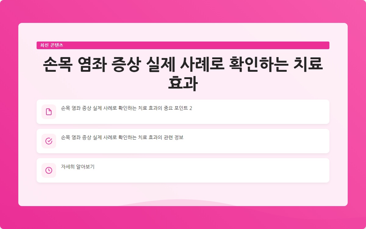 통증이 완화된 후에는 스트레칭과 강화 운동을 통해 손목의 기능을 회복해야 합니다. 전문가의 도움을 받아 안전하게 운동을 진행하는 것이 좋습니다. 이제 손목 염좌에 대한 실제 사례를 통해 치료 효과를 확인해보겠습니다.