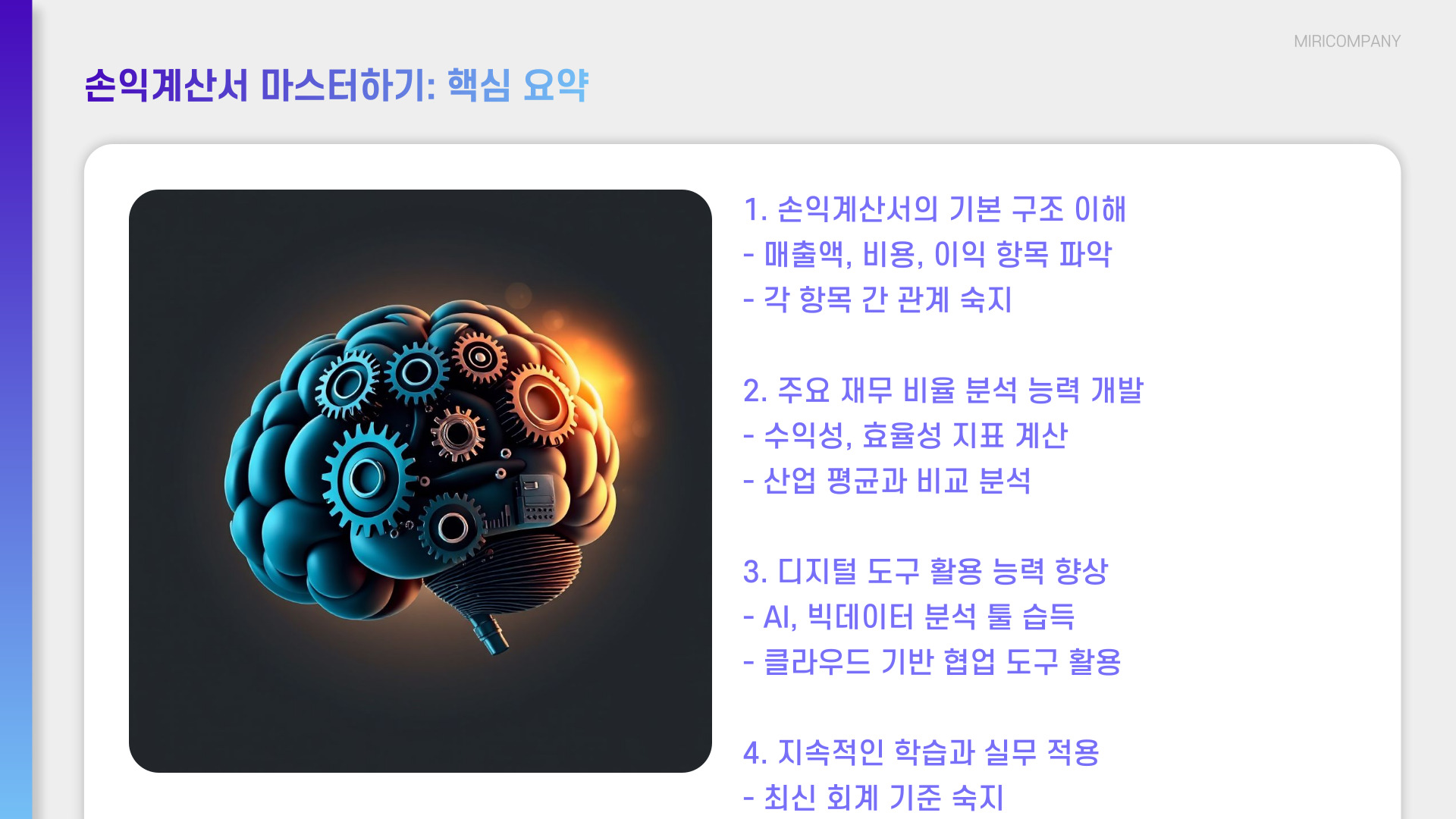 중요 포인트: 손익계산서는 기업의 재무 건강도를 평가하는 중요한 지표입니다. 따라서 매 분기 또는 매년 정기적으로 검토해야 합니다.