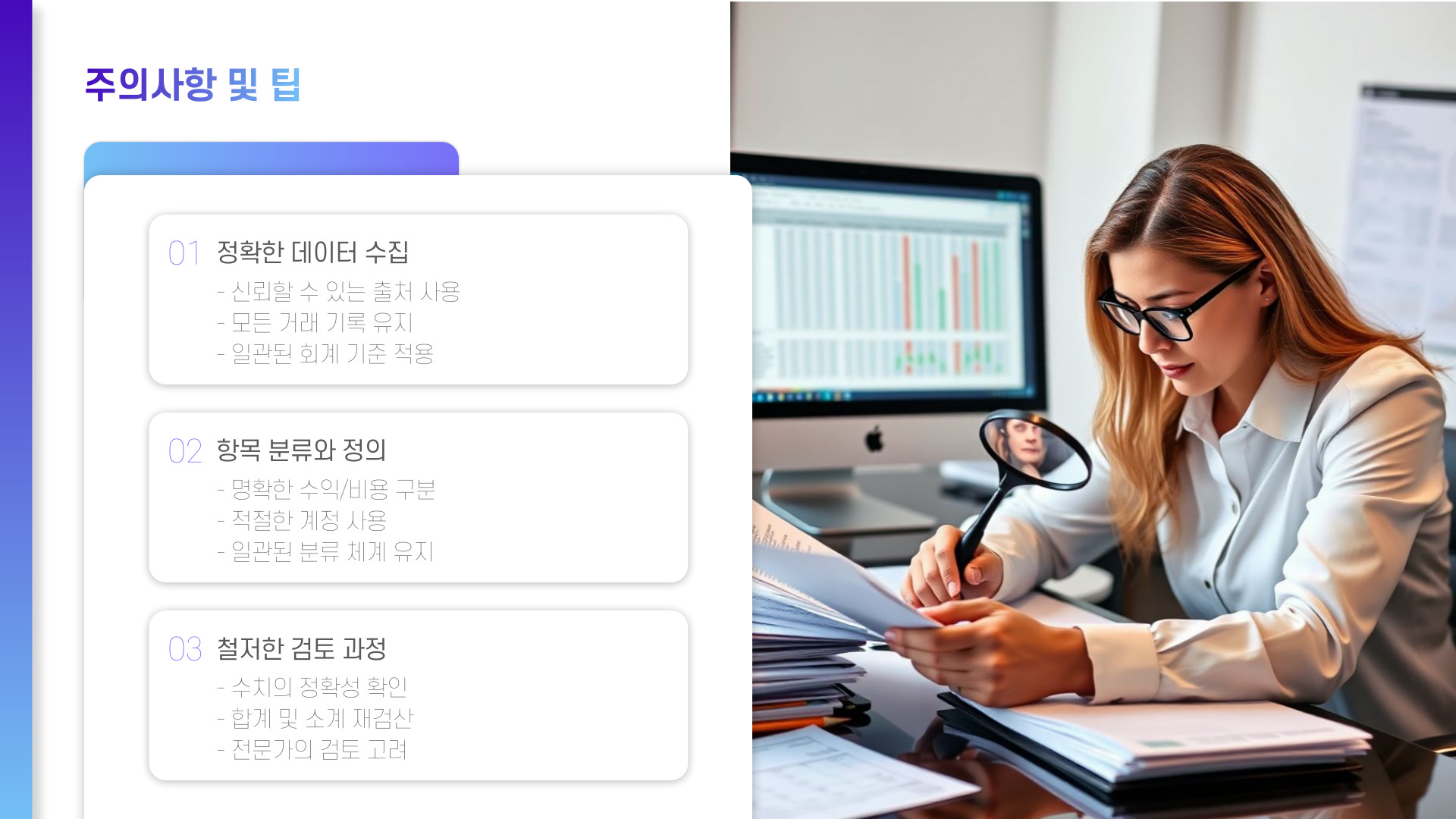 - 정확한 데이터 수집 및 철저한 검토