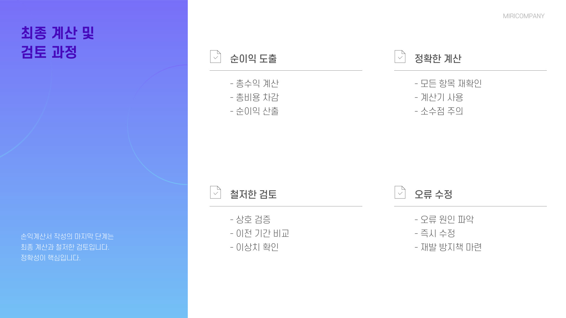 셋째, 최종적으로 계산하여 순이익을 도출합니다. 이 과정에서 정확한 수치 계산과 검토가 필수적입니다.