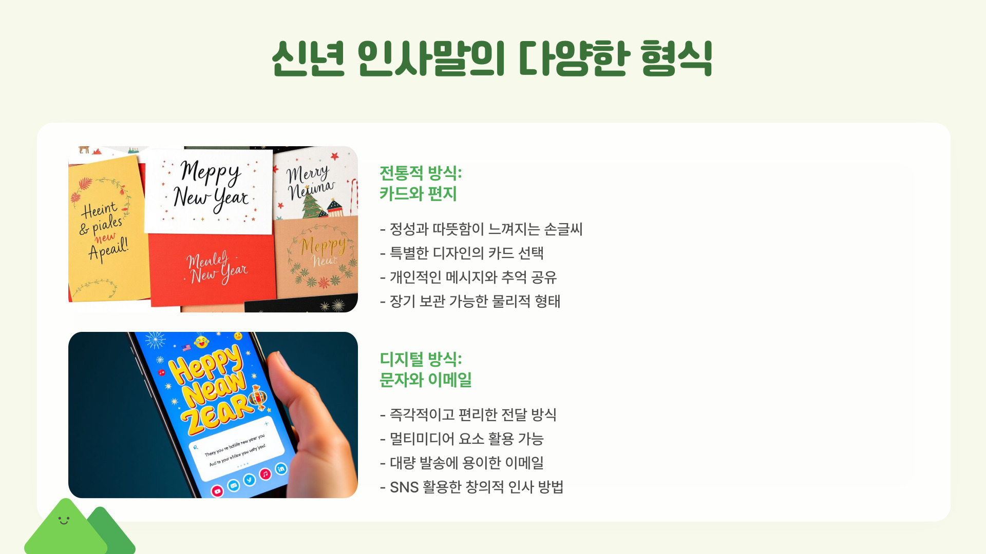 | 다양한 형식 활용 | 카드, 문자, 이메일 등 |