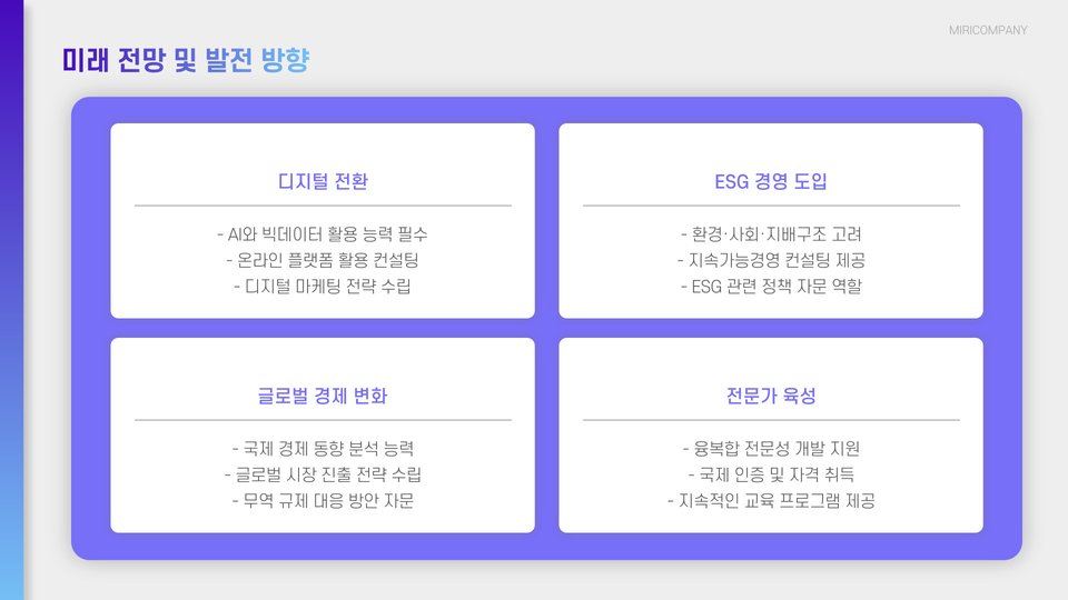 - 전문가의 도움을 통해 시장에서의 경쟁력을 높일 수 있습니다.
