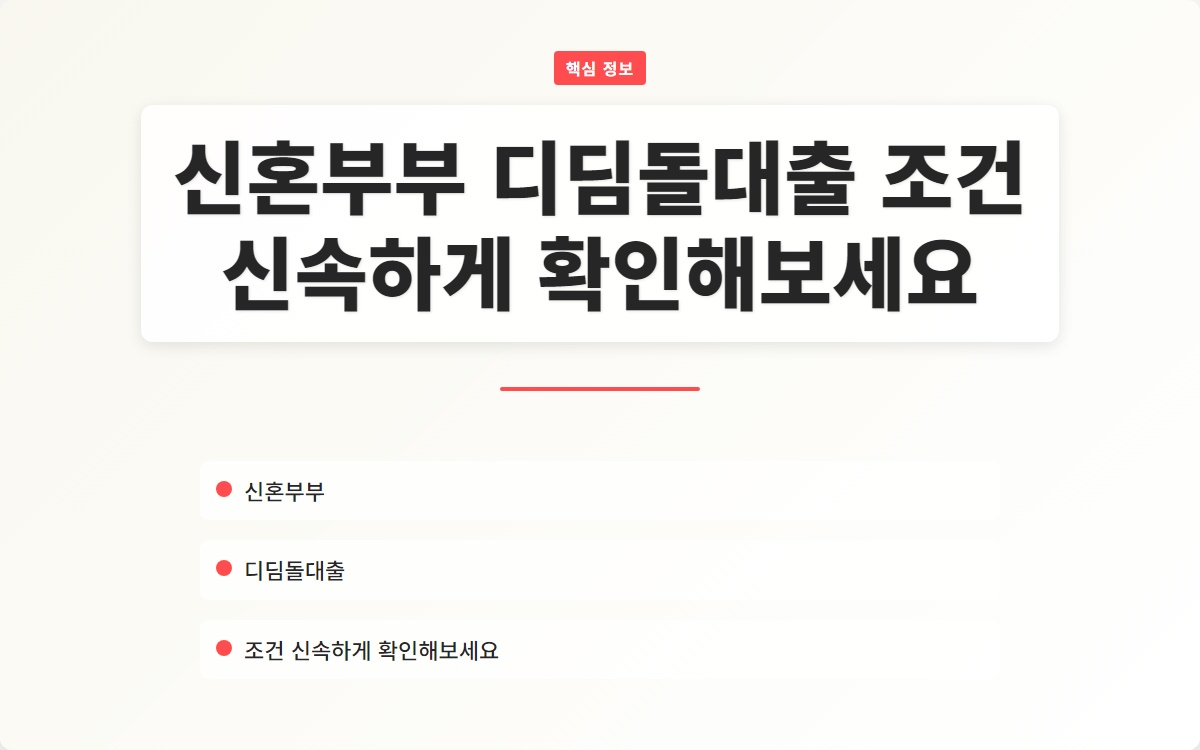 신혼부부 디딤돌 대출의 조건과 과정을 궁금해 하시나요? 아래 내용을 통해 신속하게 확인해보세요!