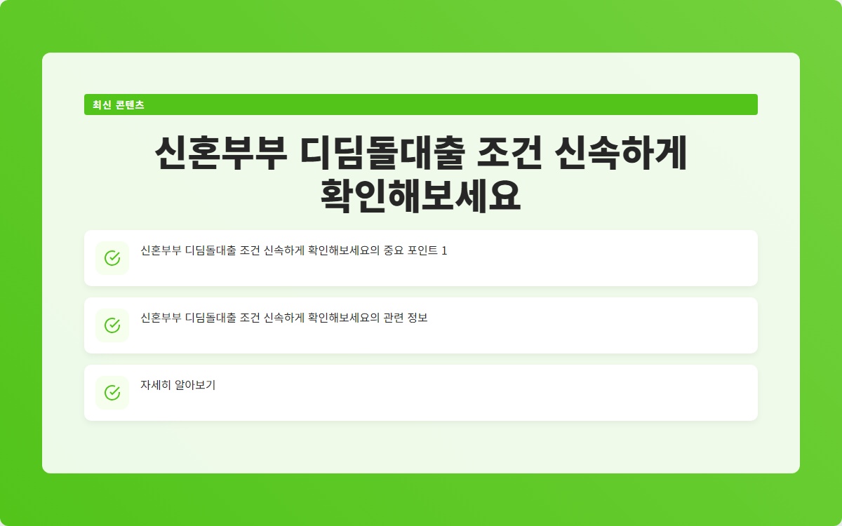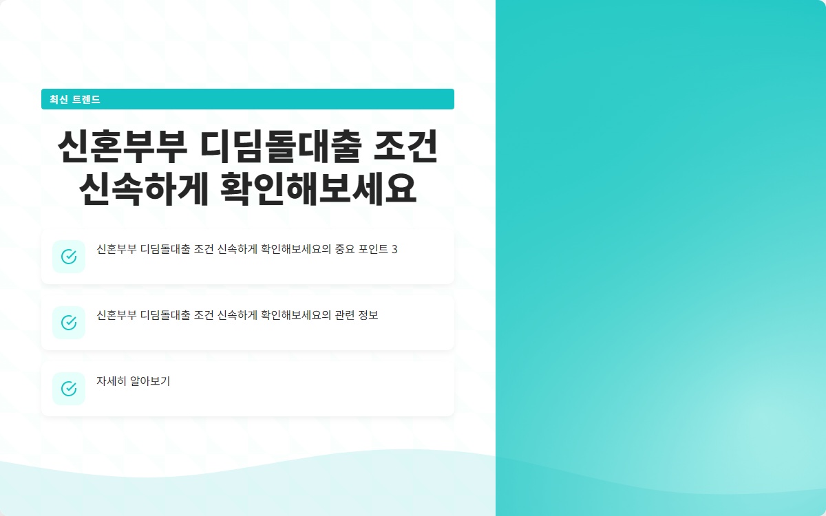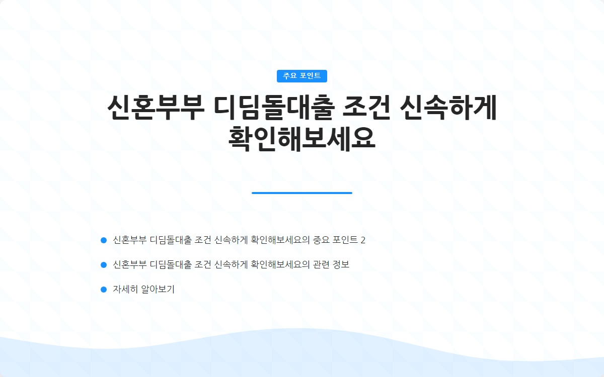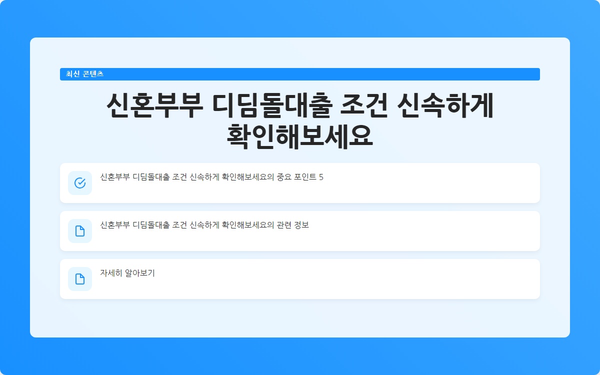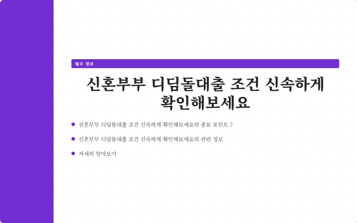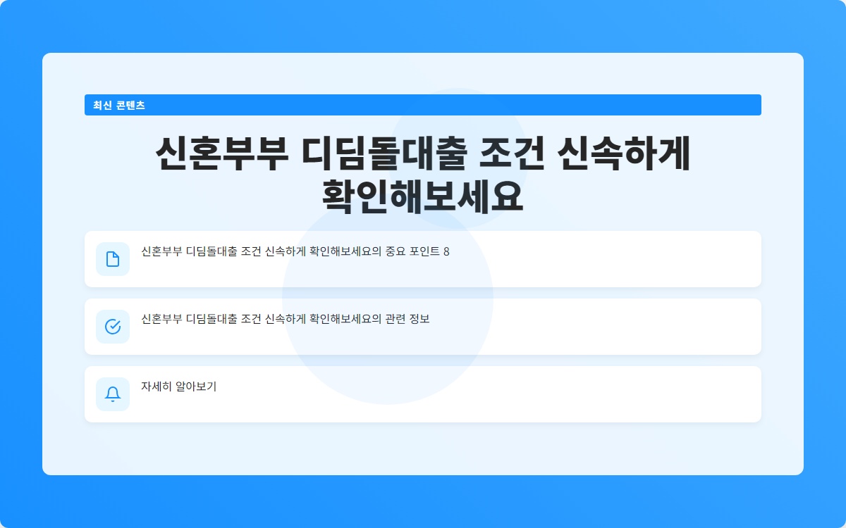 신혼부부 디딤돌 대출의 조건과 과정을 궁금해 하시나요? 아래 내용을 통해 신속하게 확인해보세요!