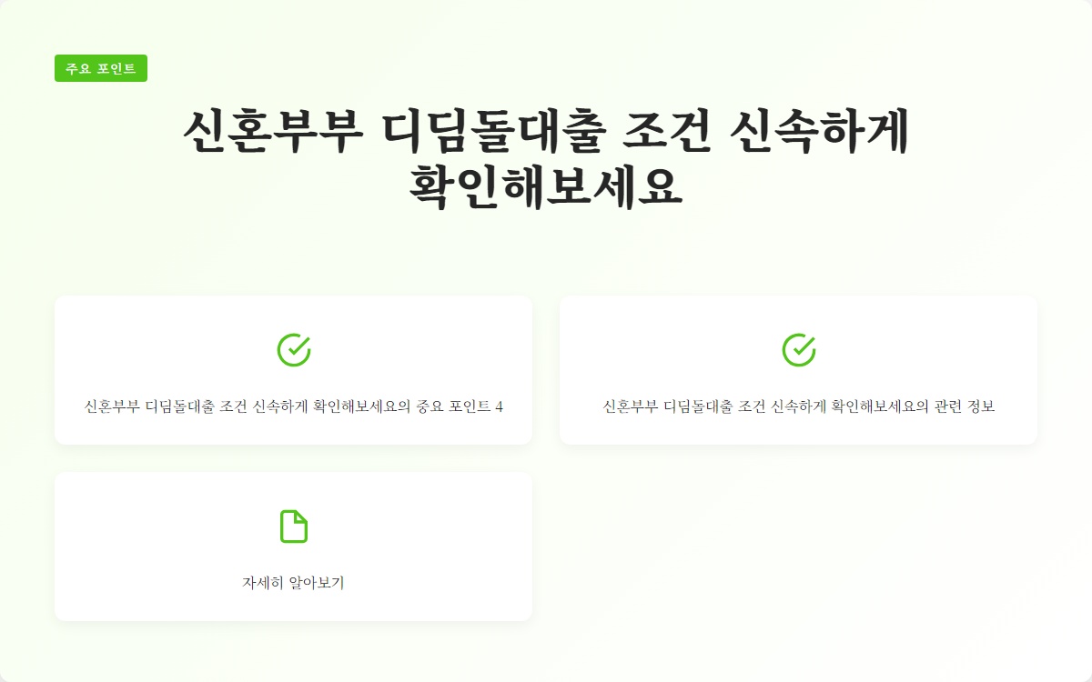 A1: 디딤돌 대출의 조건은 소득 요건, 주택 구입자격, 신혼부부 조건 등이 있으며, 개인의 상황에 따라 달라질 수 있습니다.
