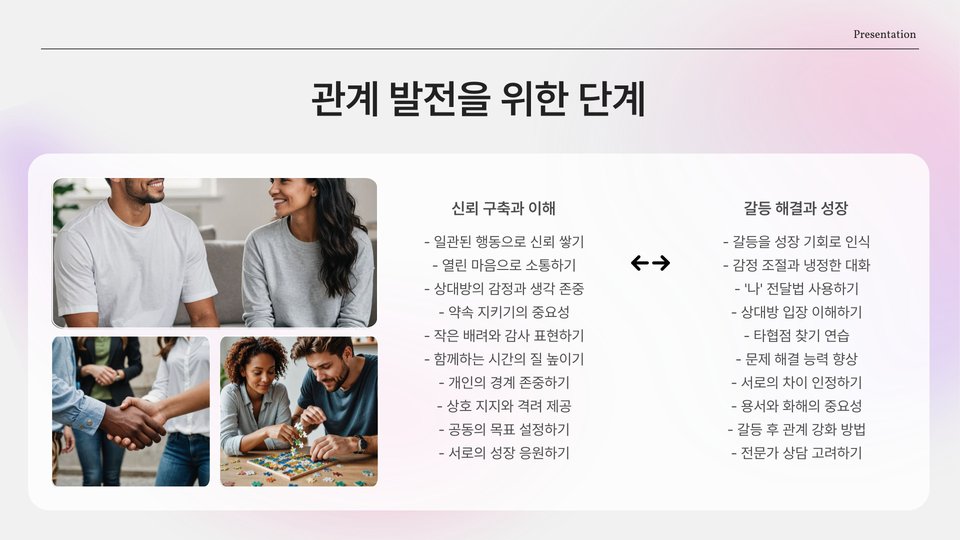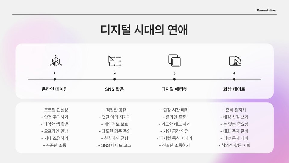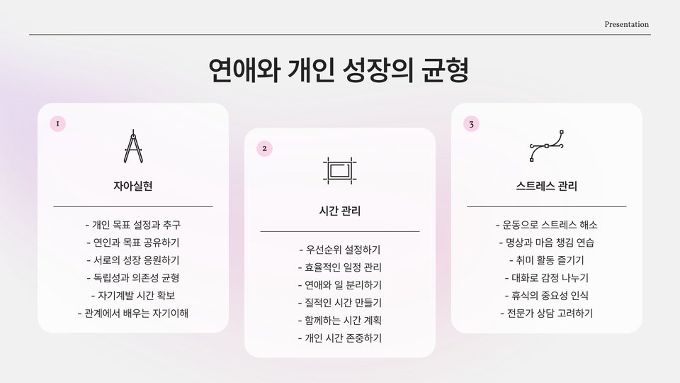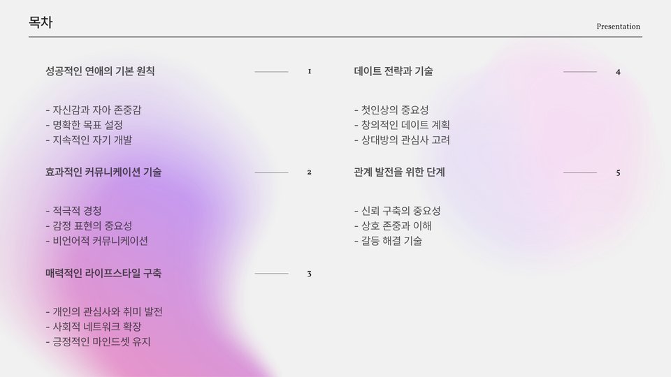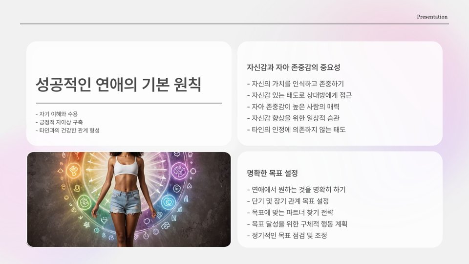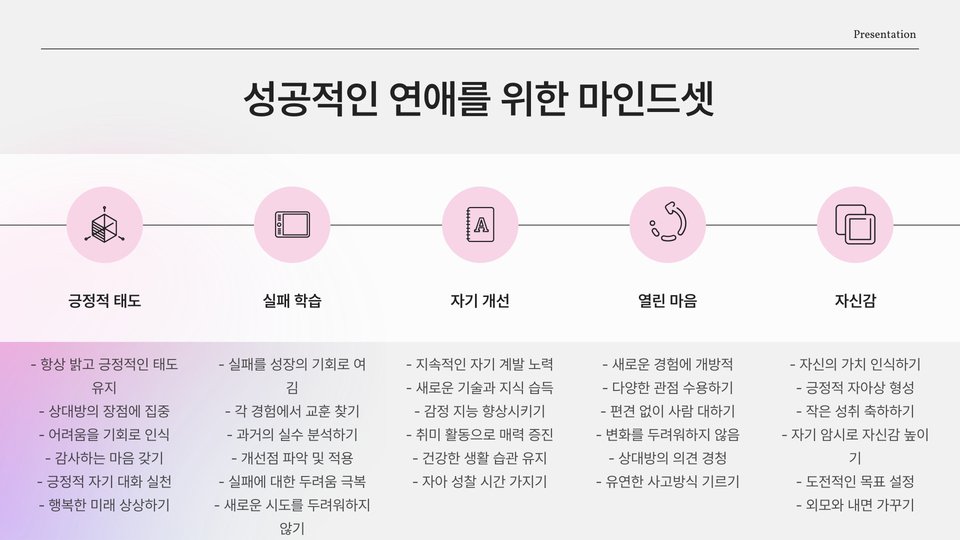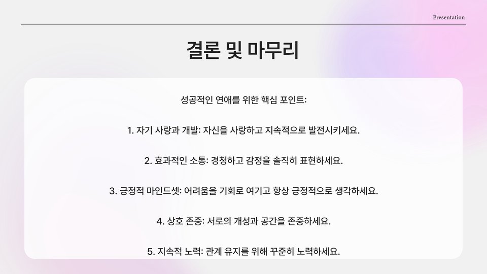 - 소통과 자기 개발은 성공적인 연애를 위한 필수 요소이다.