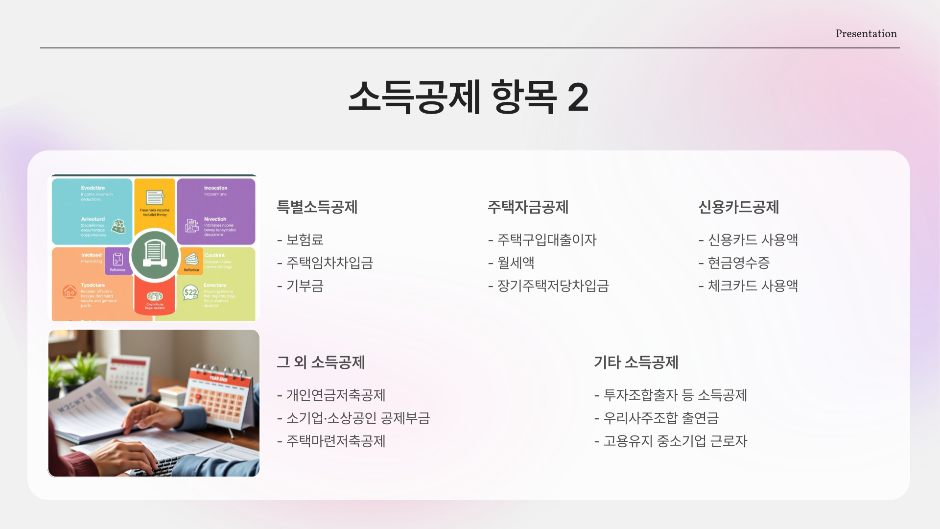 - 세액 공제를 최대한 활용하는 방법을 익히자.