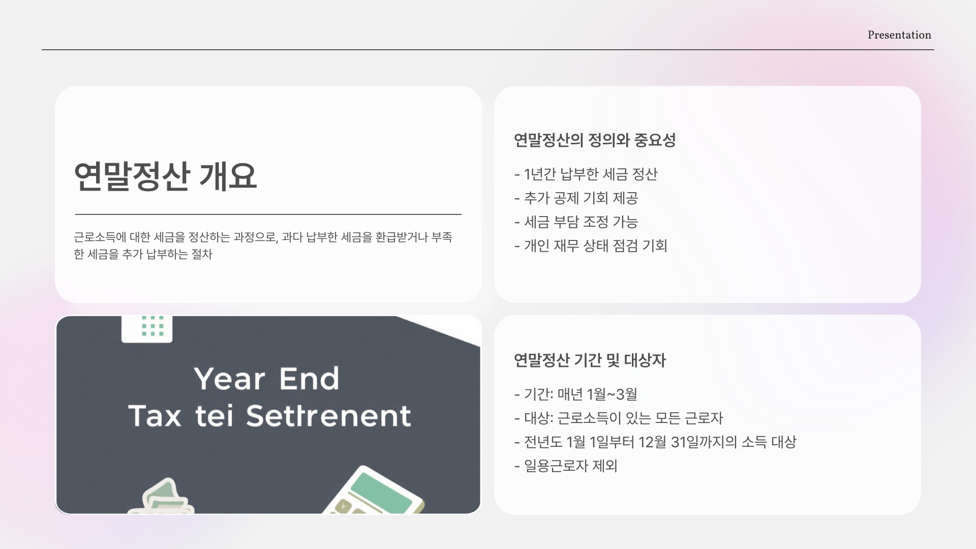 - 연말정산은 매년 정기적으로 진행된다.