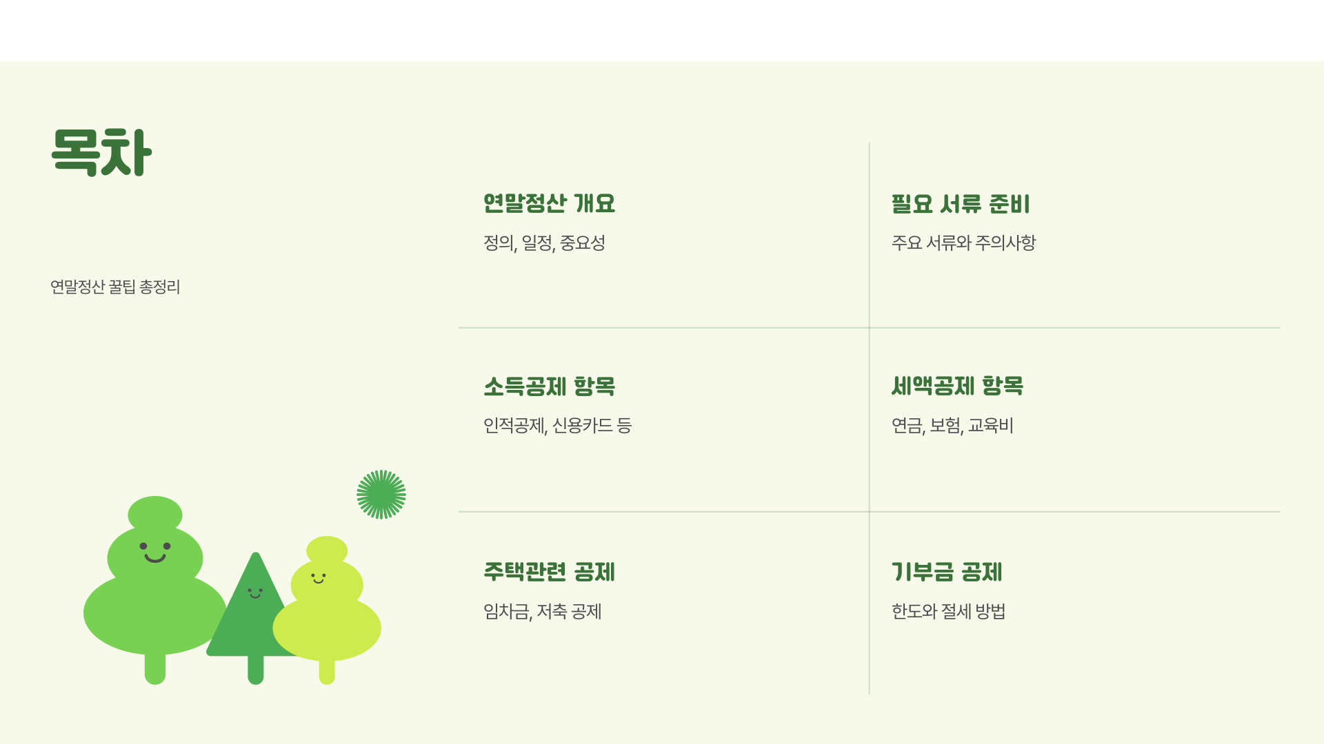 다음은 연말정산 준비를 위한 기본 체크리스트입니다: