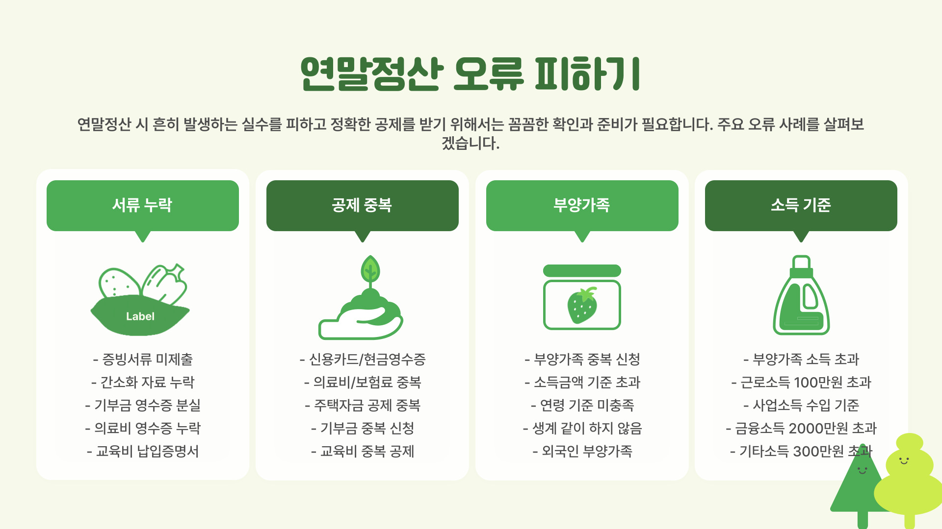 - 의료비와 교육비는 중요한 절세 항목