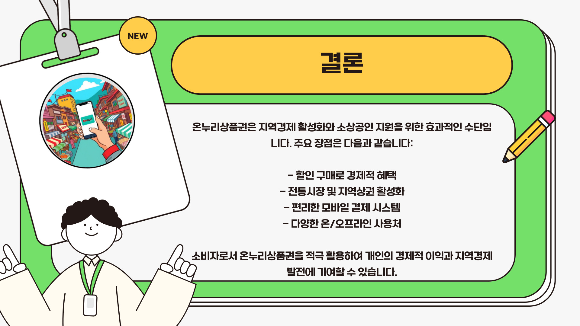 온누리상품권의 가장 큰 장점은 지역 경제 활성화에 기여한다는 점입니다. 상품권을 사용함으로써, 소비자는 지역 상점에서 구매를 하게 되고, 이는 소상공인에게 직접적인 도움이 됩니다. 또한, 상품권을 통해 다양한 할인 혜택을 받을 수 있어 소비자에게도 이득이 됩니다. 이러한 이유로 온누리상품권은 많은 사람들에게 사랑받고 있습니다.