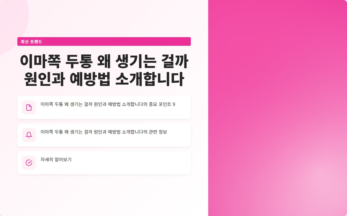 이마 두통에 대한 올바른 이해와 예방 방법을 통해 건강한 일상을 유지하시기 바랍니다.
