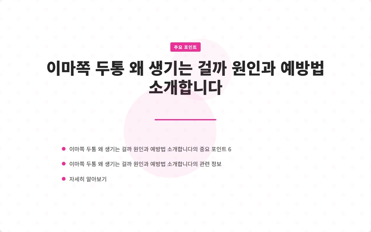 이마 두통에 대한 올바른 이해와 예방 방법을 통해 건강한 일상을 유지하시기 바랍니다.
