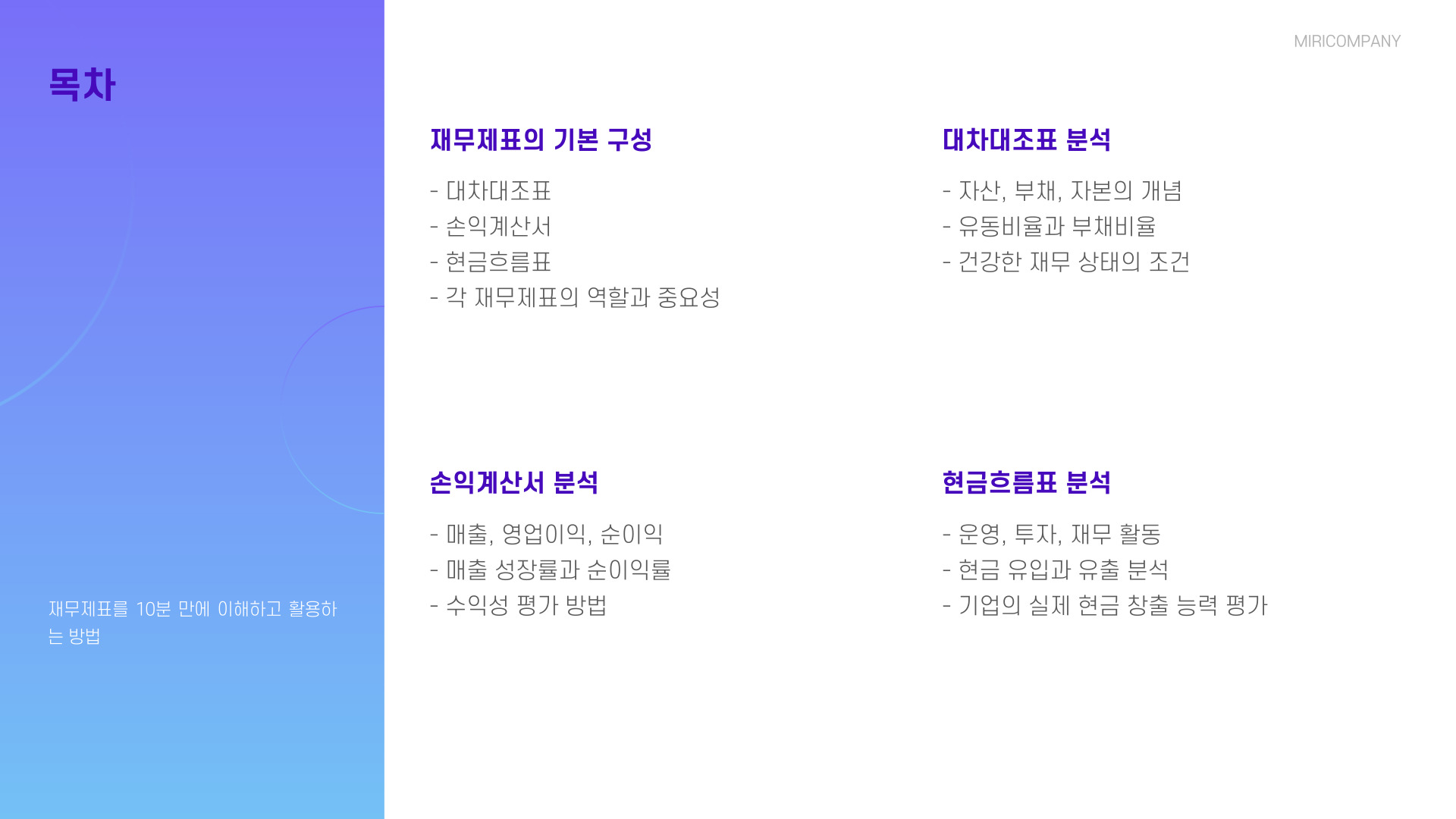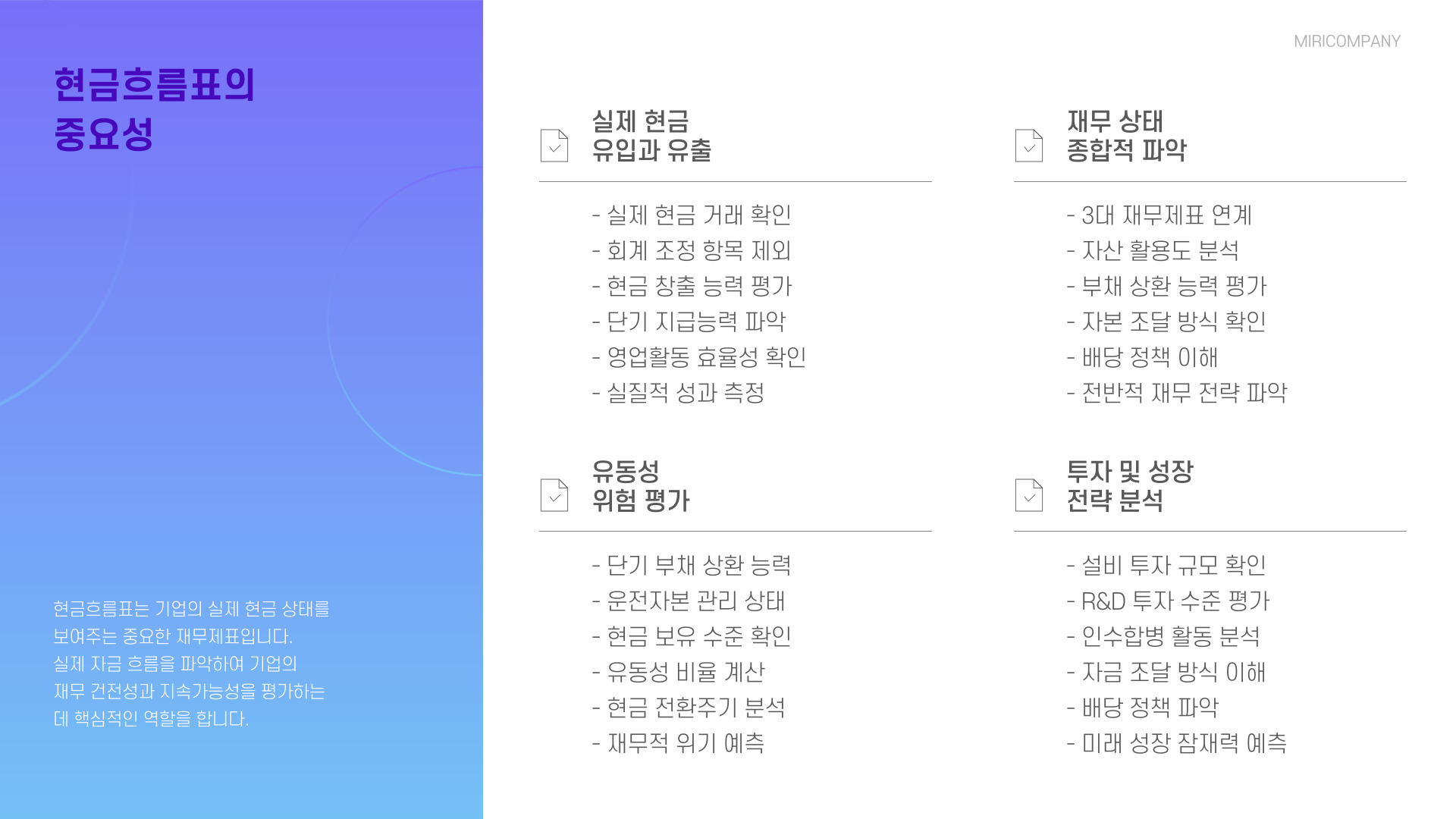 - 각 재무제표를 분석하여 기업의 재무 상태를 평가할 수 있습니다.