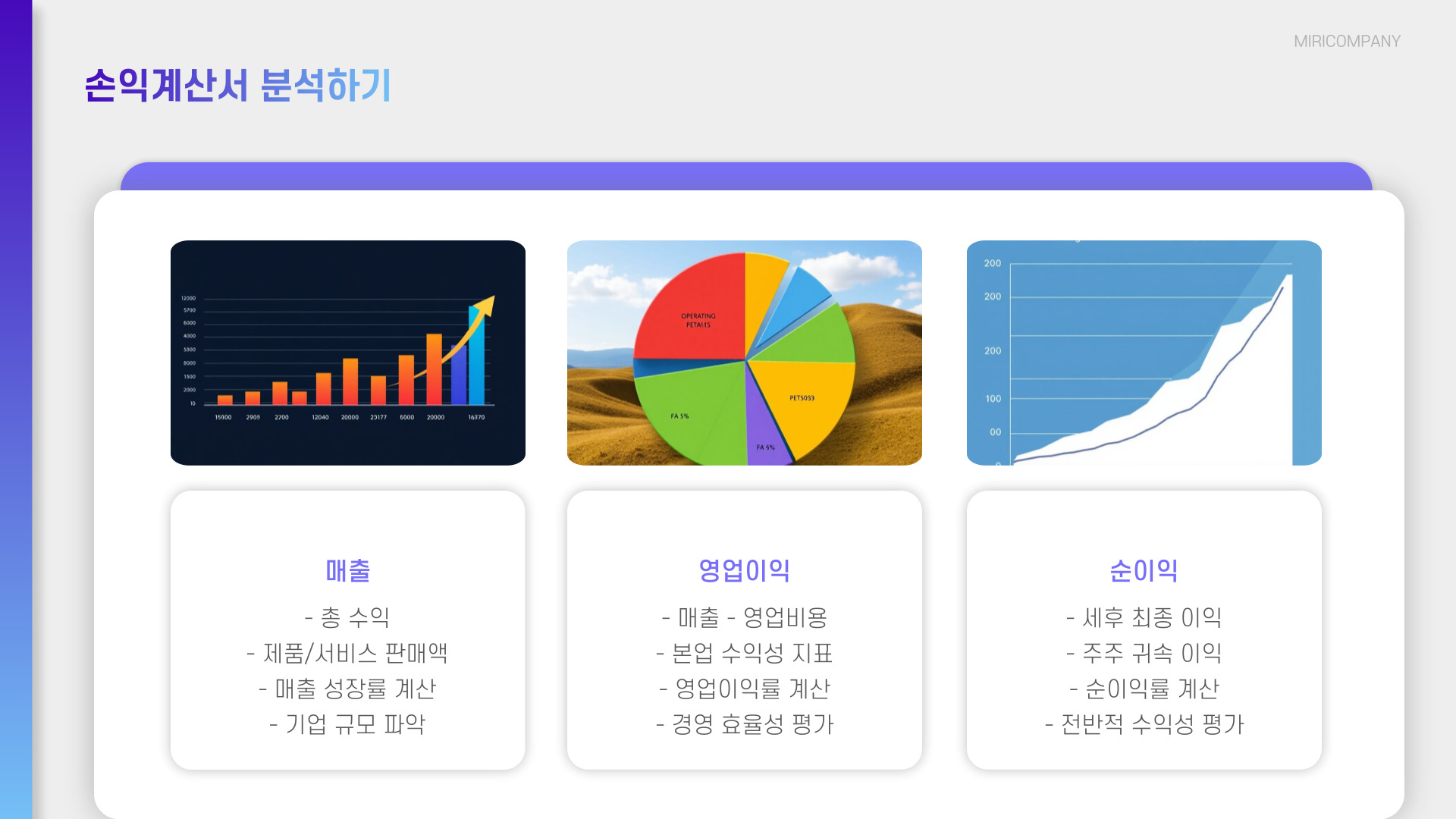 - 수익성 분석: 매출과 비용의 관계를 통해 기업의 운영 효율성을 이해합니다.