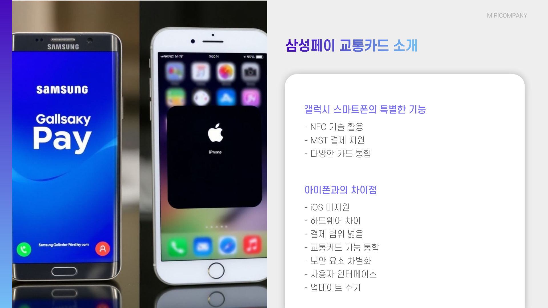 - 삼성페이는 NFC 기술을 기반으로 한 교통카드 서비스입니다.