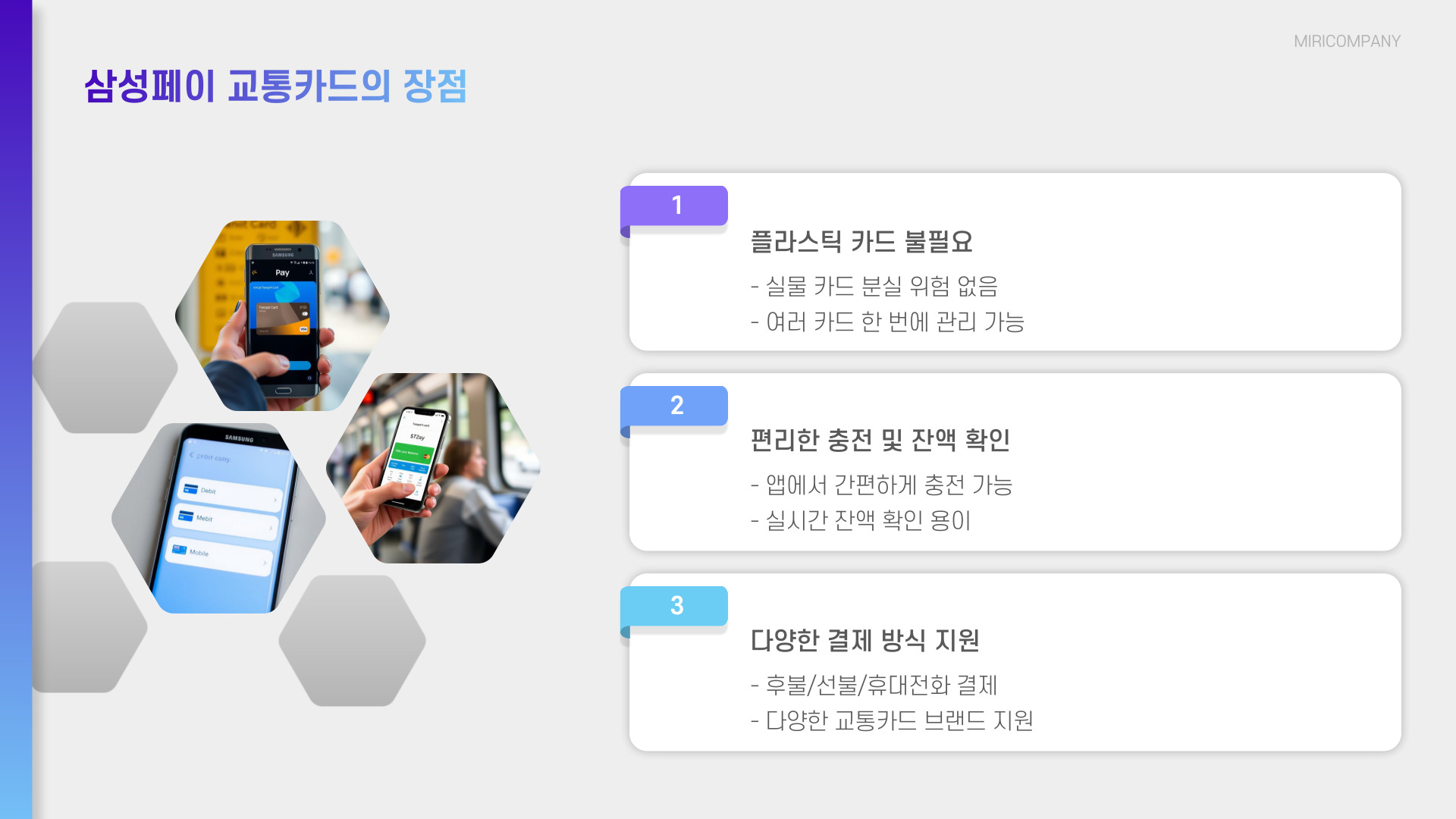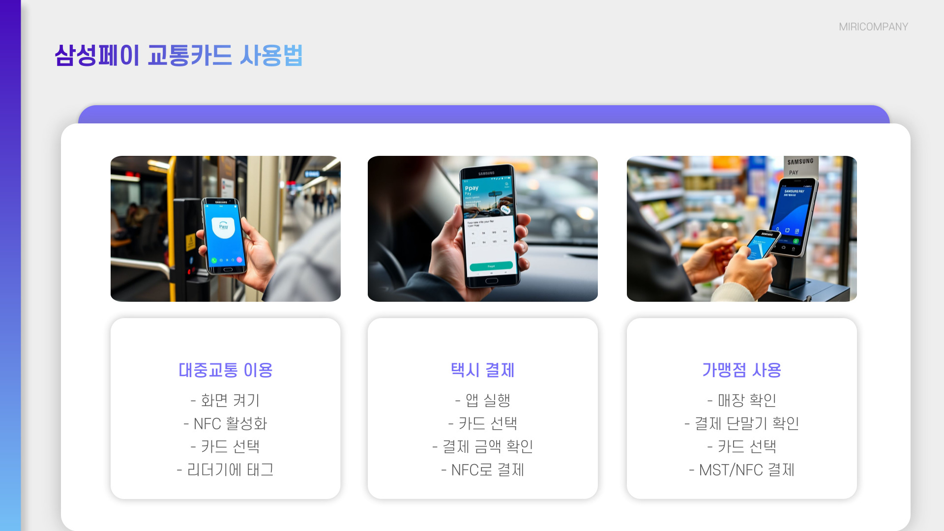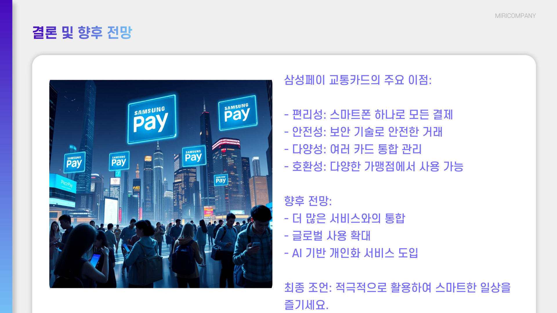 - 삼성페이 교통카드는 편리하고 안전한 결제 수단입니다.