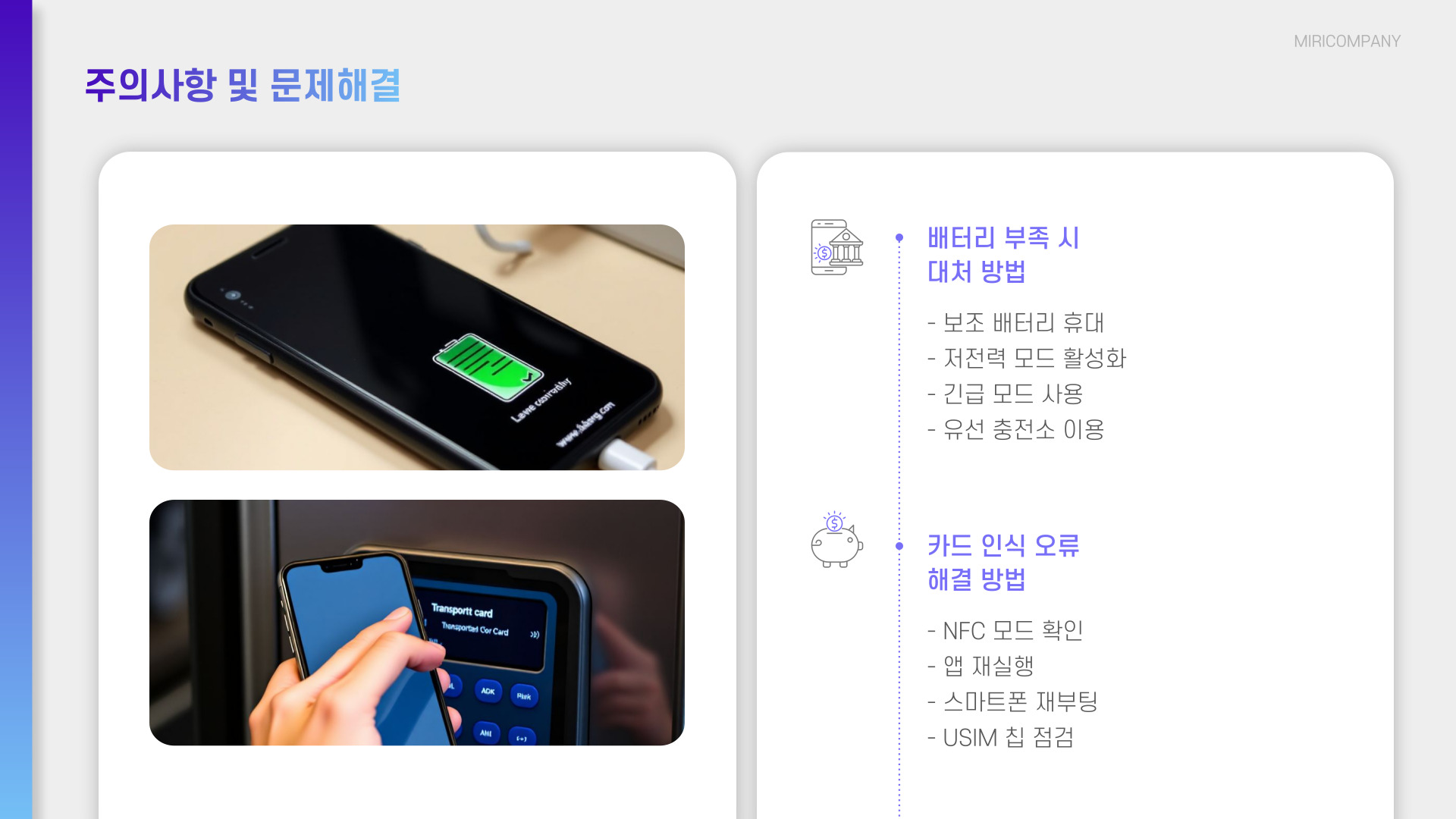 - 현금이나 카드 없이도 대중교통 이용 가능.