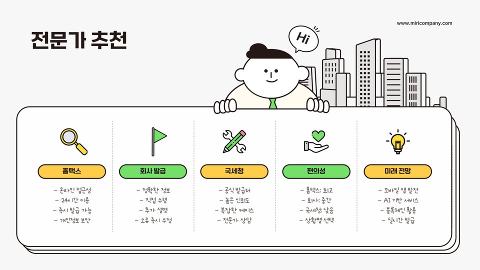 - 신뢰할 수 있는 플랫폼인 홈택스 이용 가능
