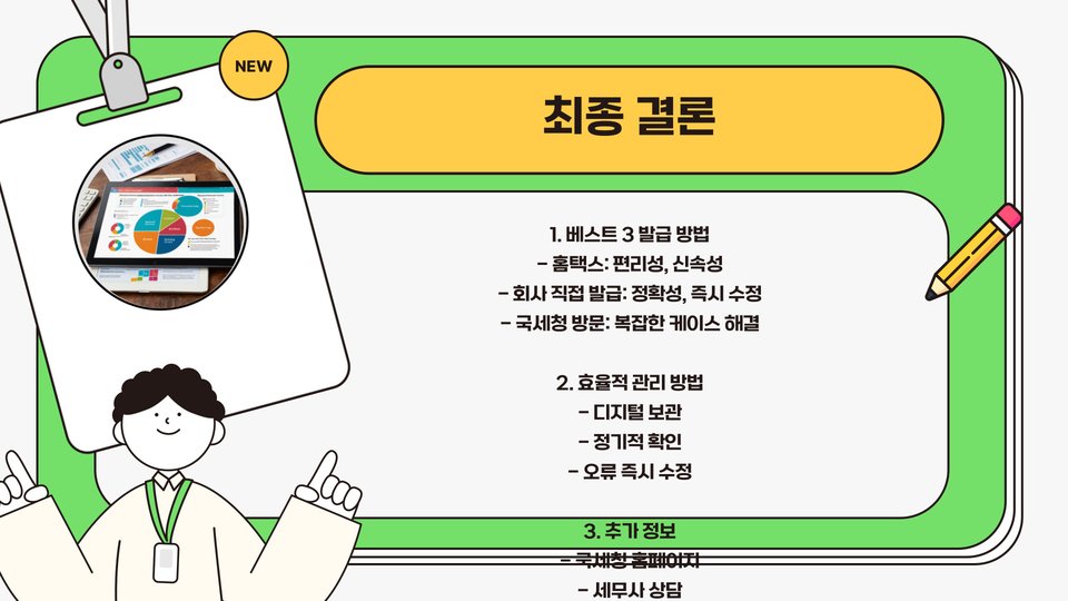 결국, 자신의 상황과 필요에 따라 적절한 방법을 선택하여 원천징수영수증을 발급받는 것이 중요하겠습니다.