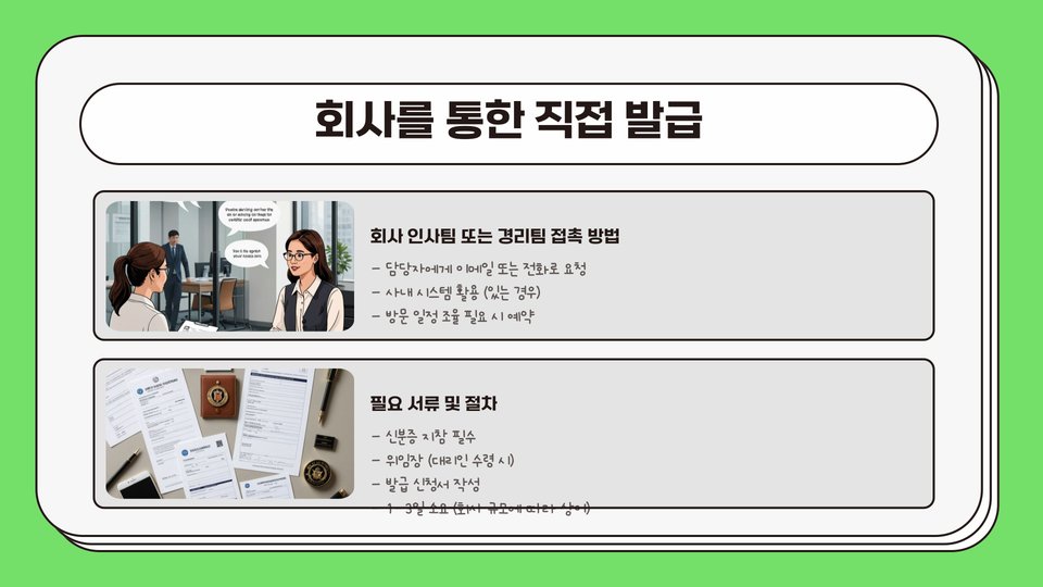 | 직접 발급 요청 | 즉각적인 의사소통 가능 | 소요 시간 및 대기 |
