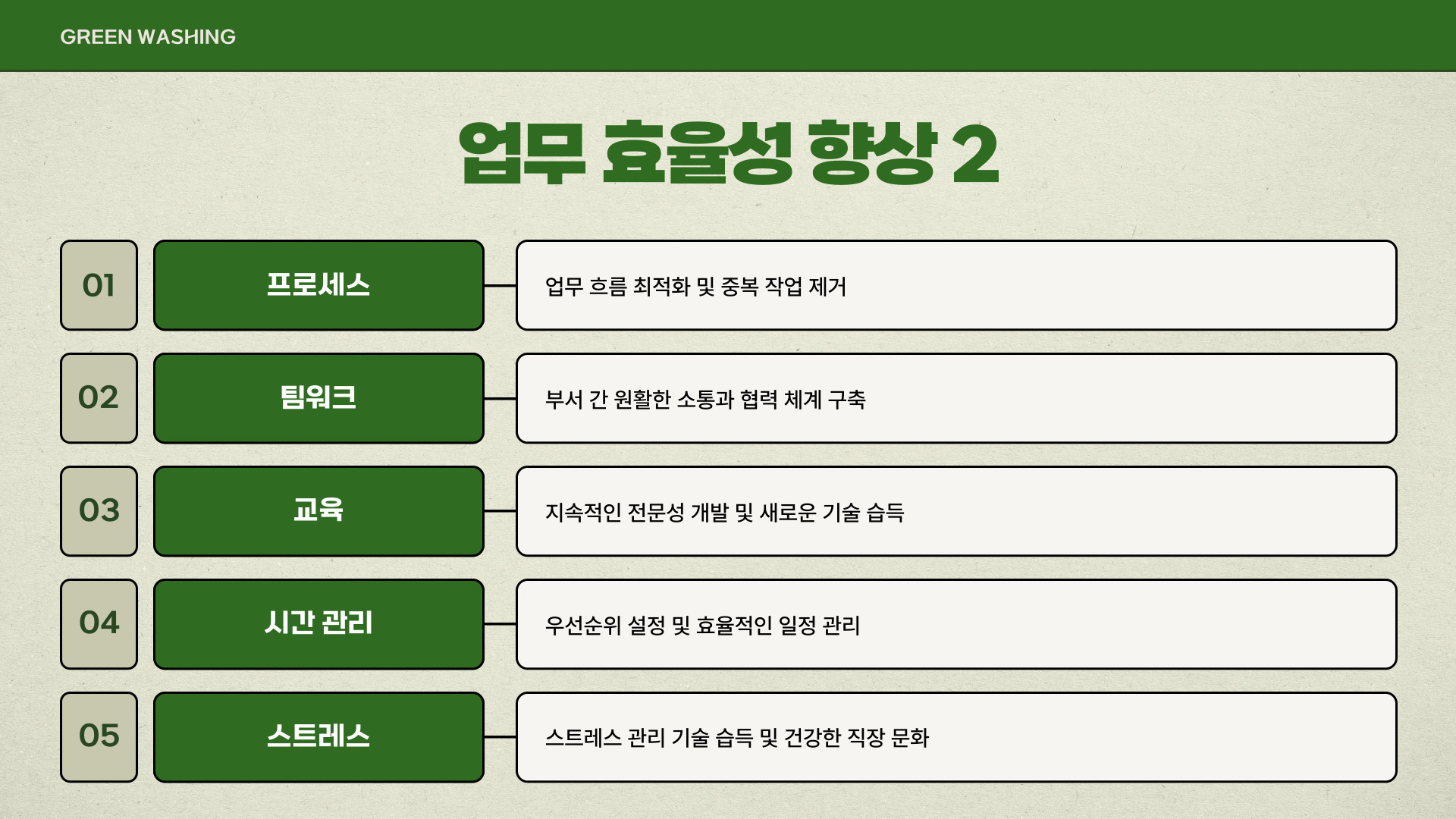 - 업무 효율성을 높이기 위해서는 조직적이고 기술적인 접근이 필요합니다.