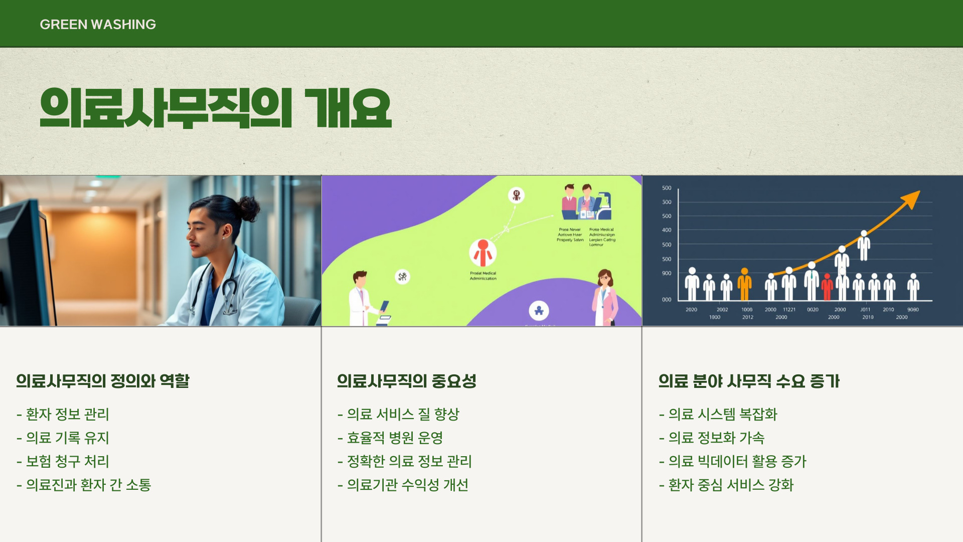 의료사무직에서 자격증의 중요성과 업무 효율성을 높이는 방법은 서로 긴밀히 연결되어 있습니다. 자격증은 본인의 전문성을 보여주는 수단일 뿐만 아니라, 효율적인 업무 수행을 위한 필수 조건입니다. 앞으로도 이러한 전문성을 토대로 효율성을 극대화하기 위해 노력하는 것이 중요합니다.