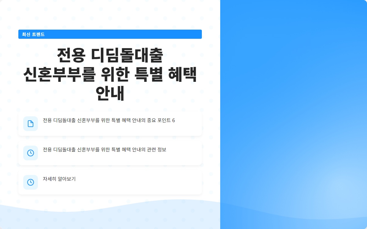 신혼부부를 위한 전용 디딤돌 대출, 특별한 혜택을 누려보세요!