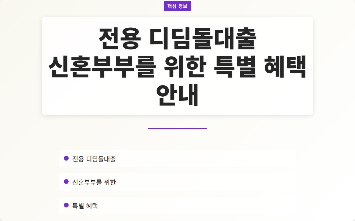 신혼부부를 위한 전용 디딤돌 대출, 특별한 혜택을 누려보세요!