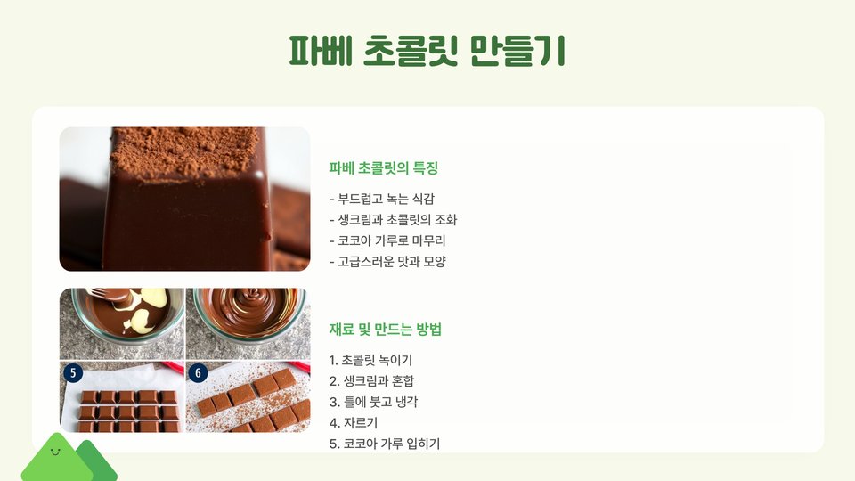 - 필수 재료: 코코아 버터, 설탕, 우유 가루 등