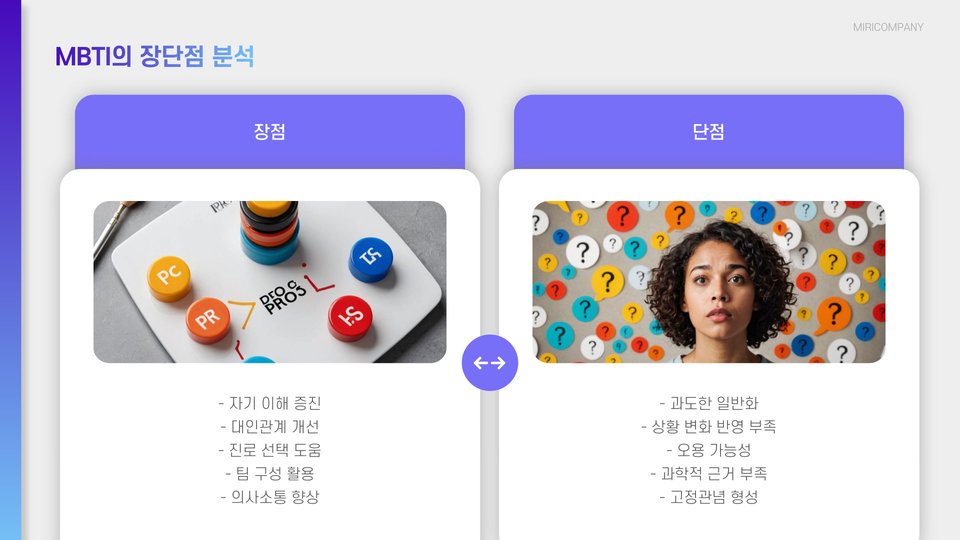 - MBTI 검사는 개인의 삶에 긍정적인 영향을 미친다.