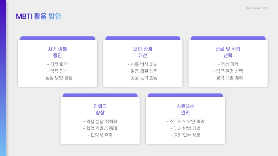 - MBTI 검사를 통해 자기 이해를 높일 수 있다.