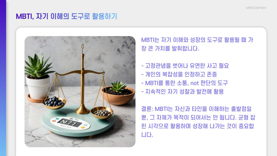 - MBTI 검사는 자기 이해를 높이는 도구입니다.