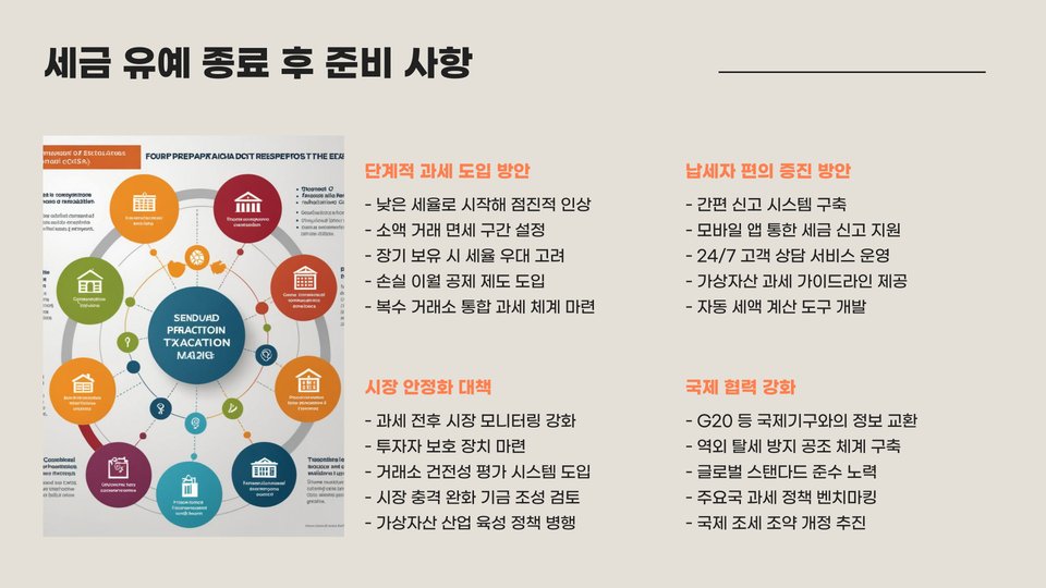 코인 세금 유예는 특정 조건을 만족하는 경우 세금 부과를 일시적으로 미루는 제도를 의미합니다. 예를 들어, 코인을 장기 보유하는 투자자에게는 세금 부과를 유예해 주는 경우가 있을 수 있습니다. 이는 투자자들이 자산을 매도하지 않고 장기적으로 보유하도록 유도하는 정책입니다. 그러나 유예가 전부가 아니라, 결국에는 세금이 부과될 것이므로, 투자자들은 이러한 사항을 충분히 이해하고 준비해야 합니다.