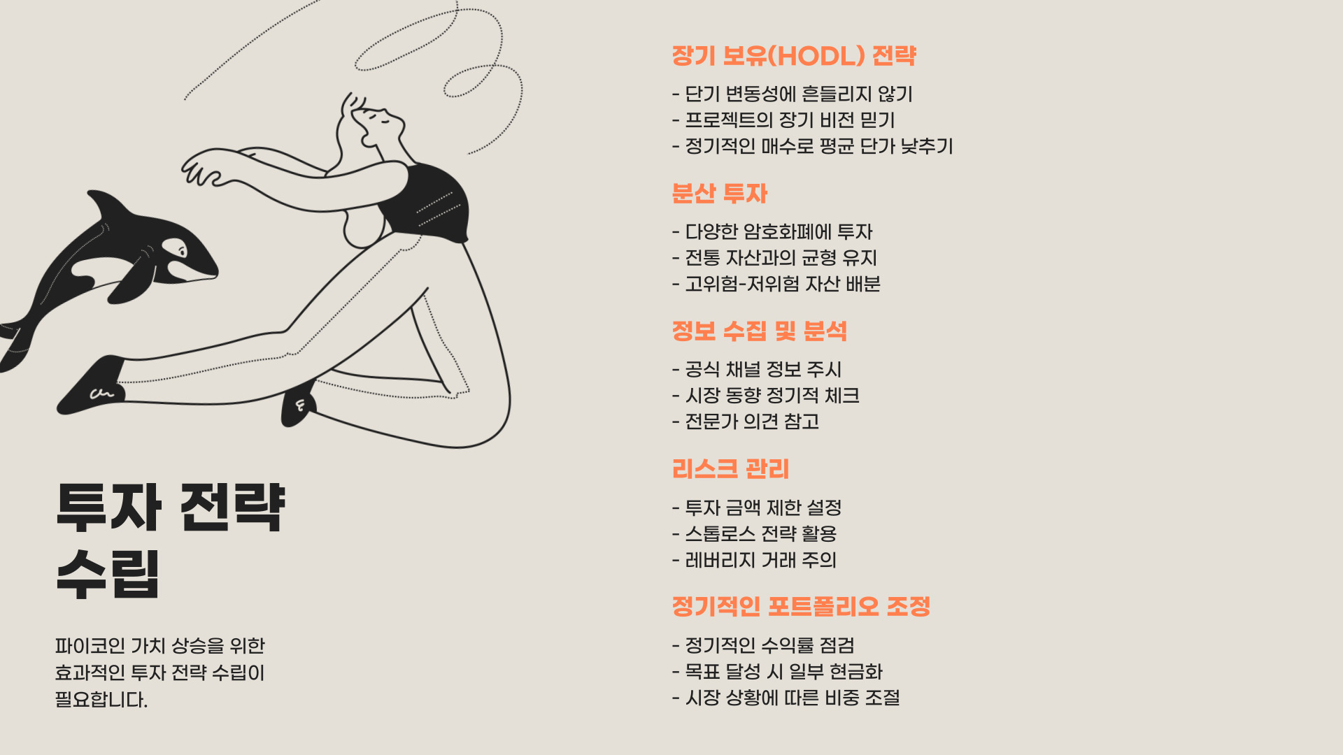 파이코인에 투자할 때는 몇 가지 전략을 고려해야 합니다. 첫째, 장기 투자를 염두에 두는 것이 중요합니다. 단기적인 시세 변동에 일희일비하지 않고, 꾸준히 파이코인의 가능성을 믿고 투자하는 것이 필요합니다.