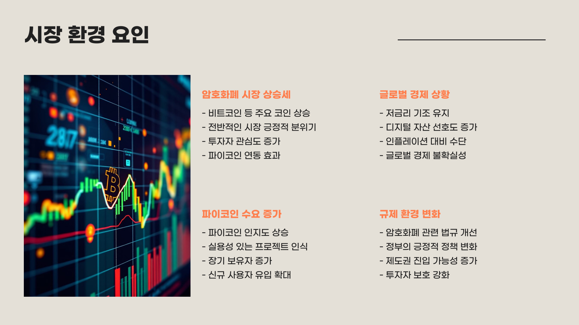 파이코인의 시세가 3배 상승한 이유는 여러 가지가 있습니다. 첫째, 글로벌 경제 불안정성이 높아지면서 많은 투자자들이 안전 자산으로 암호화폐에 눈을 돌리고 있습니다. 이런 현상은 파이코인과 같은 신생 가상화폐에도 긍정적인 영향을 미치고 있습니다.